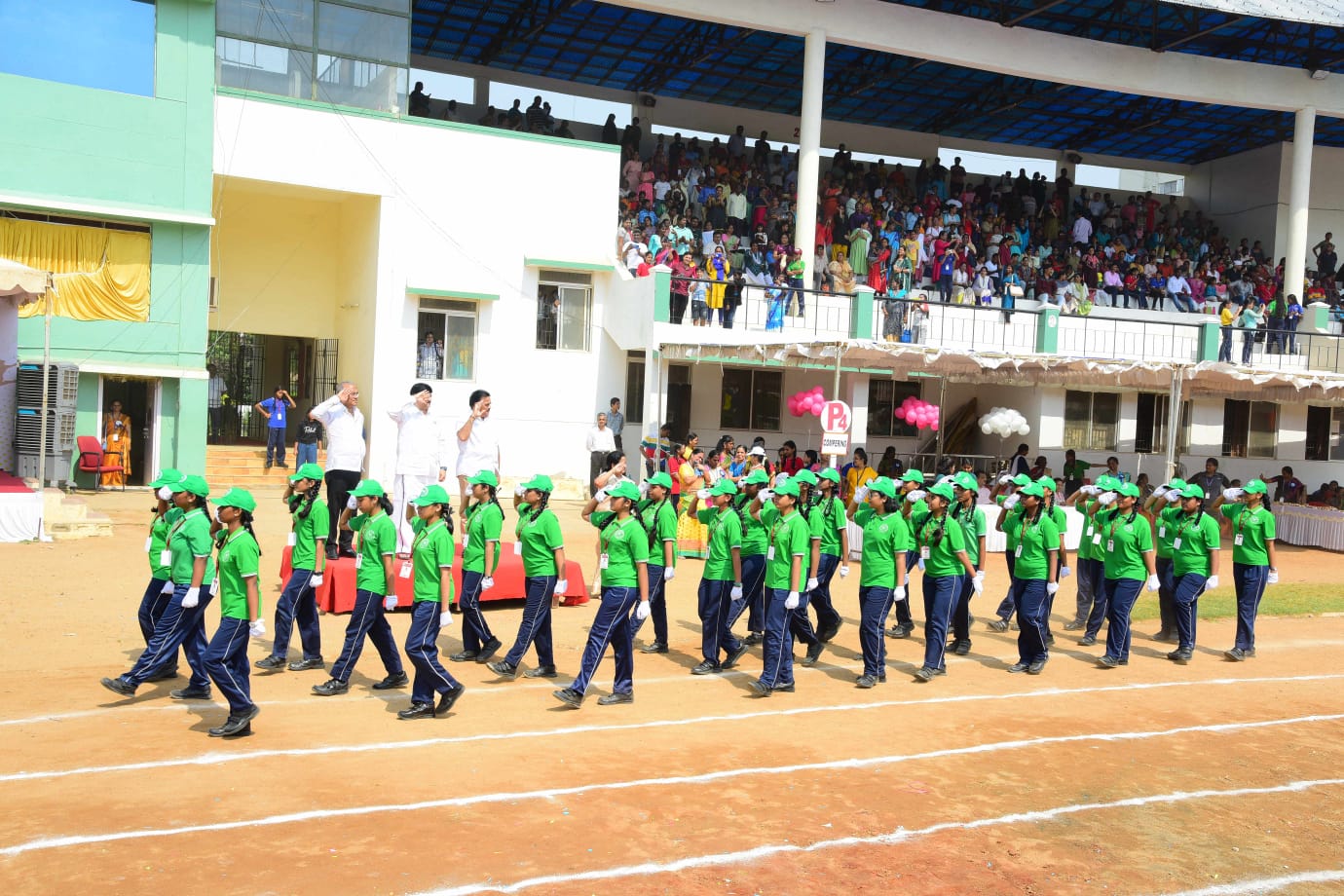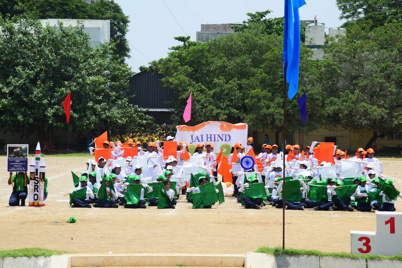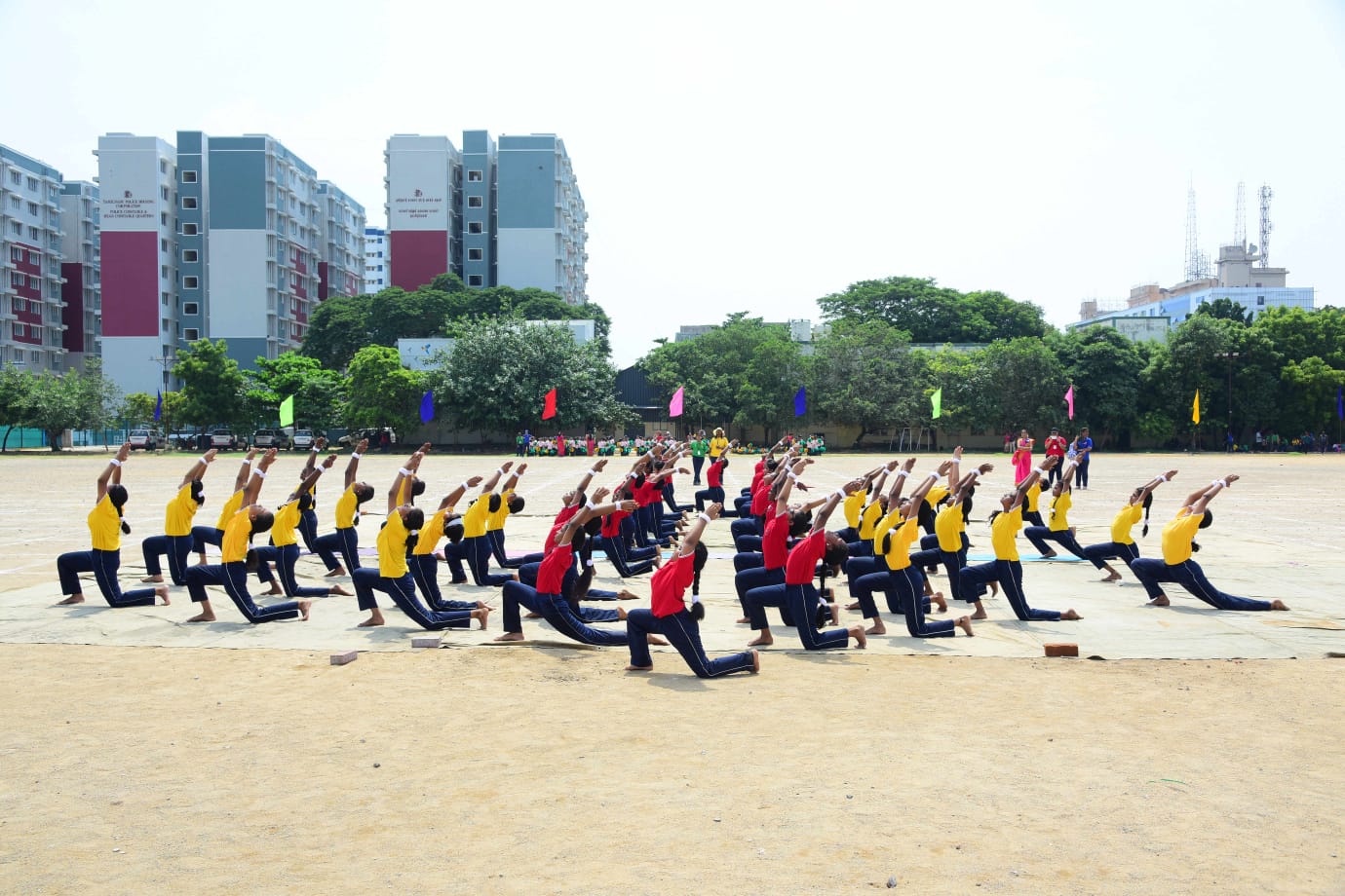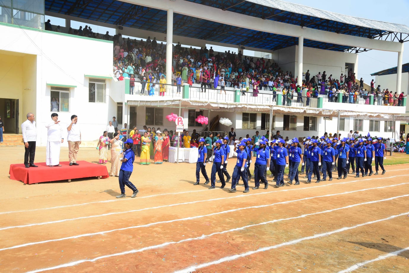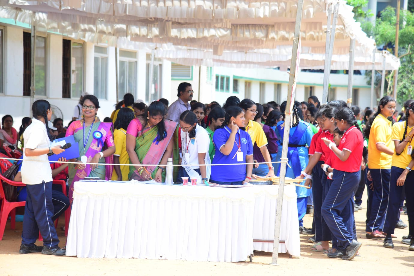 The Honourable Minister Sekar Babu addressed the gathering with a motivational speech. To exhibit the importance of team work and coordination, students participated in several drills. The tiny tots of KG performed unicorn drill, std I and II did a drill with pom–pom as props, followed by std III & IV with their dumbbell drill, and the FLAG drill of class V & VI kindled the sense of unity in diversity and Go Green by VII and VIII, “Save trees” by high school. The bold and stunning performance of the school band, Silambam and Yoga, kept the audience spellbound. All displays offered entertainment of a most novel and pleasing nature.