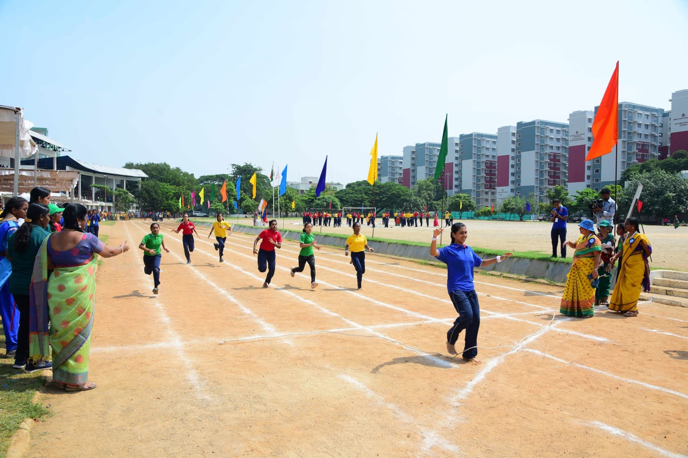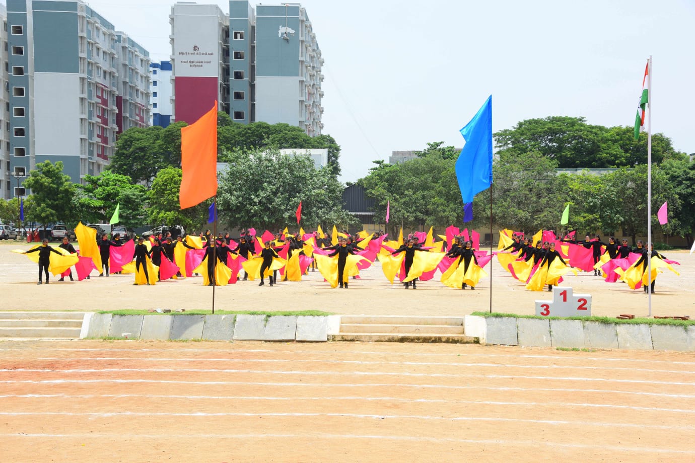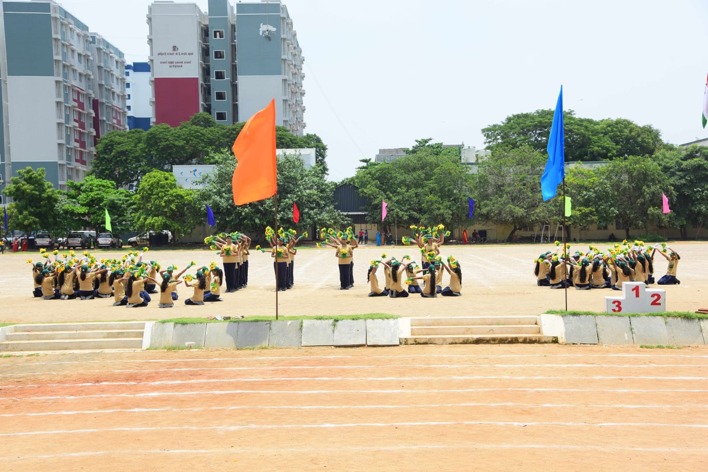 The ceremonial passing of the school and house flags to the Principal Mrs Swarnalatha Gopalakrishnan, signified the end of the sports day which witnessed the enthralling performances and enthusiasm of all the students. Multiple hours of training and the strenuous efforts taken by the students and teachers will ever be inscribed in the history of the school.