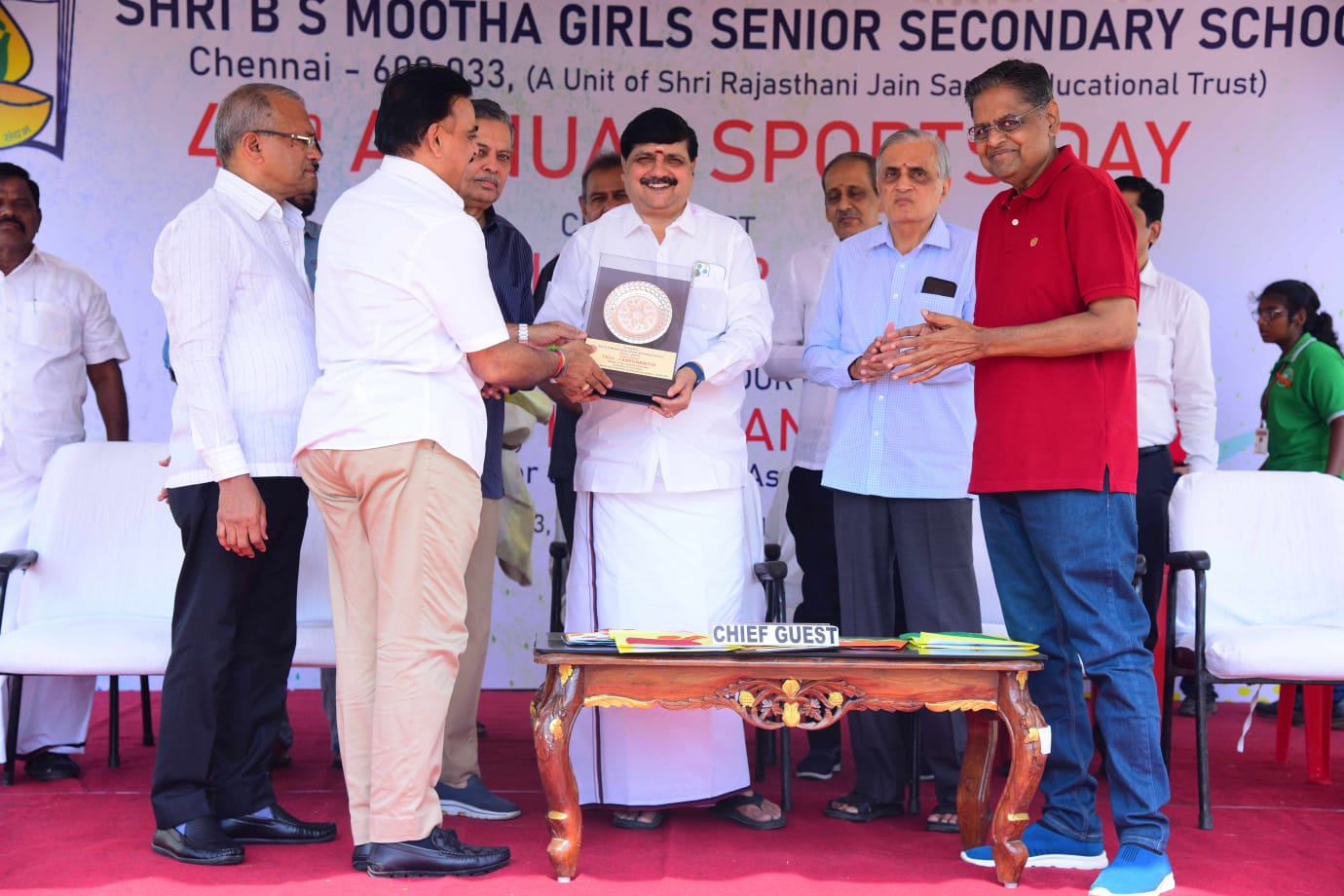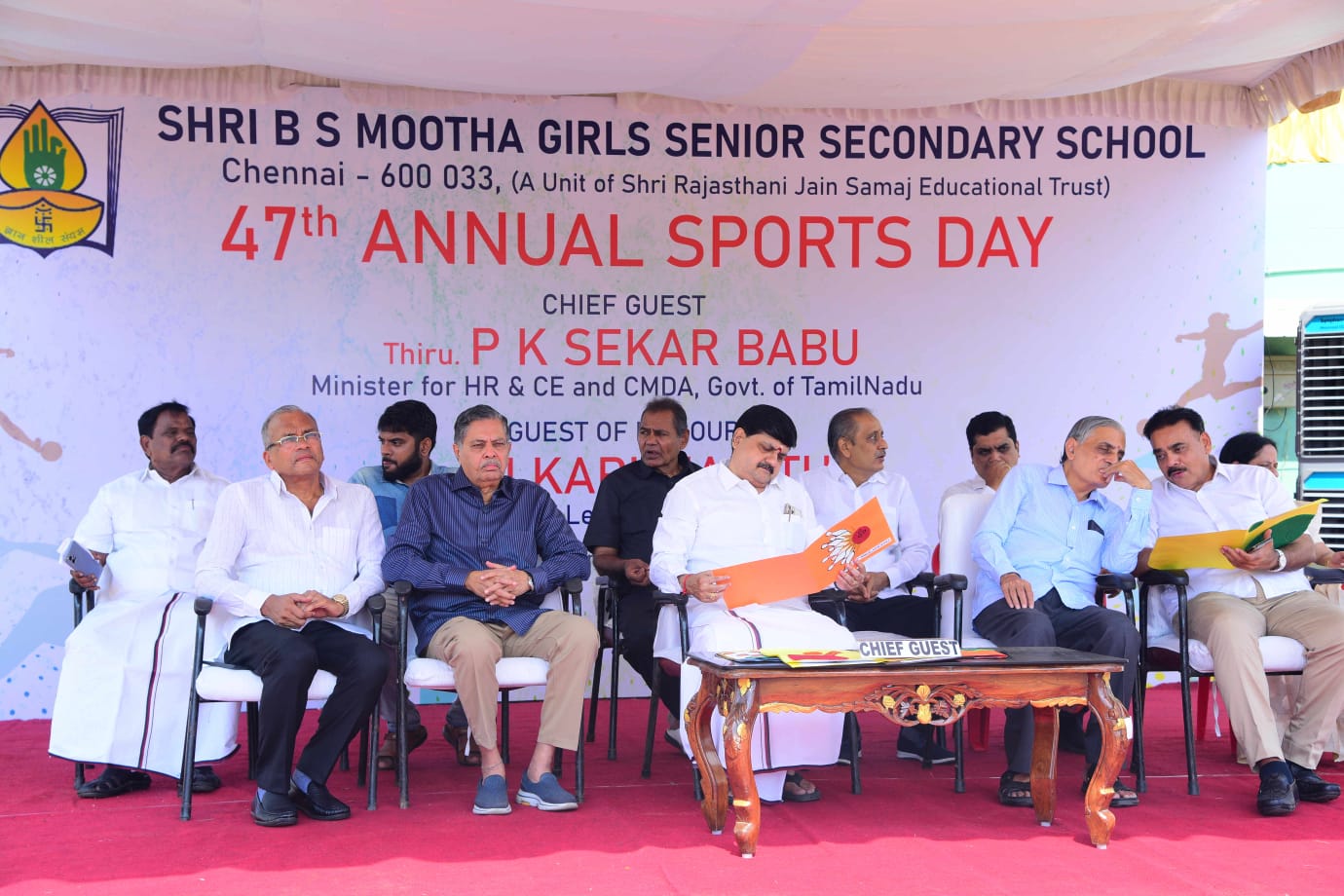 The Honourable Minister Sekar Babu was the chief guest of the ceremony. Shri J. Karunanthi, MLA was the guest of honour. Secretary Shri. Vijay Kothari, Correspondent Shri.Kishan Srisrimal Jain, Chairman Shri. Prakash C Sacheti, Managing trustee Shri.Dharmichand Singhvi, Vice President Shri. Harish Mehta, other management members of the school, and Principal Smt. Swarnalatha Gopalakrishnan welcomed and felicitated the honourable guests.