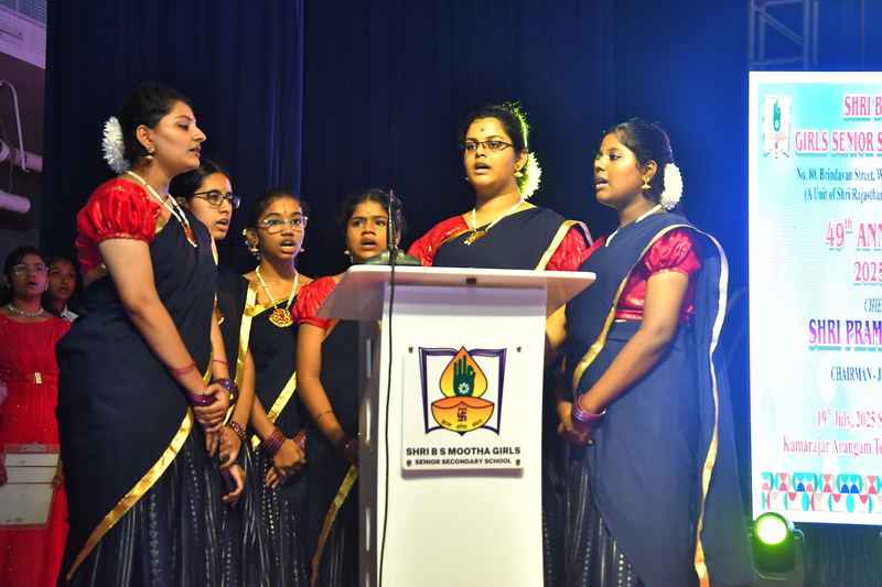 Shri B.S. Mootha Girls Senior Secondary School marked its 49th Annual Day Celebration with great pride and joy on 19th July 2025 at Kamarajar Arangam, Chennai. The evening unfolded as a tribute to nearly five decades of empowering girls education and holistic excellence.