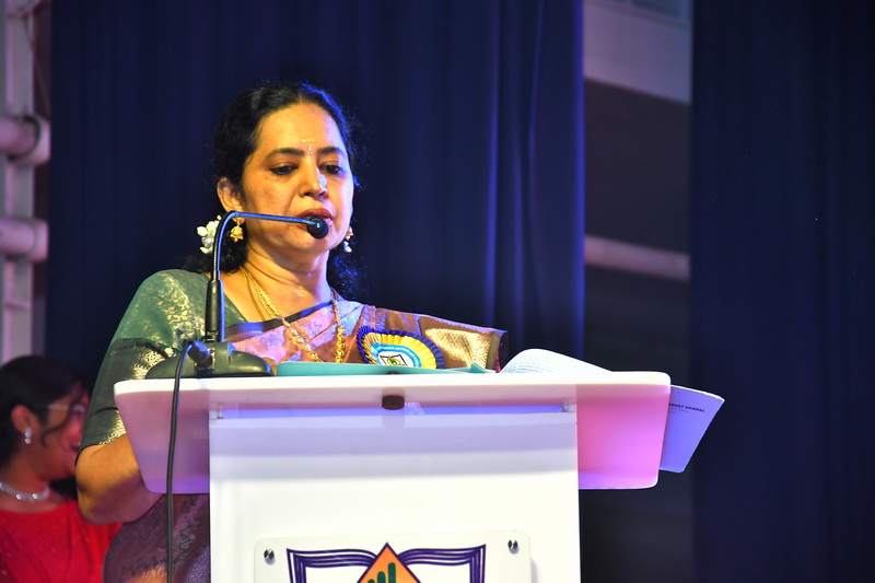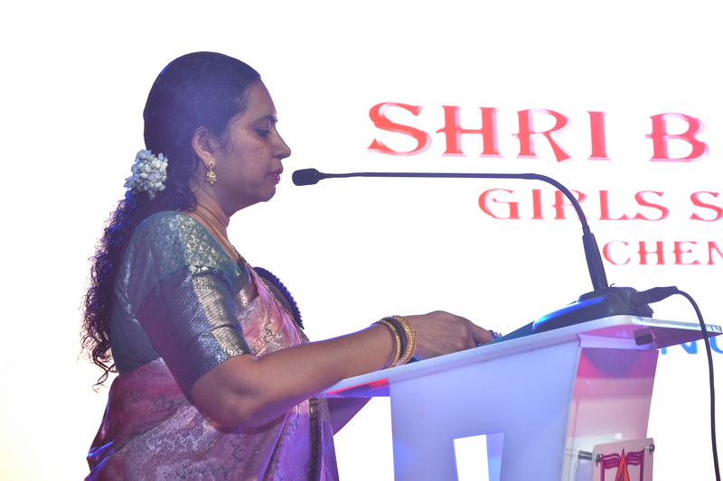 Madam Principal Smt. S. Deivanai presented the Annual School Report, highlighting academic milestones, co-curricular triumphs, civic engagement initiatives, and SBSM’s continuing legacy of 100% girls literacy. Her narration reflected the school’s dedication to nurturing confident, compassionate, and capable leaders of tomorrow.