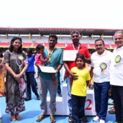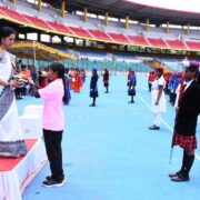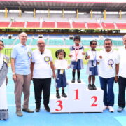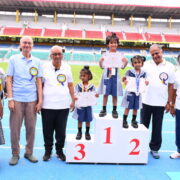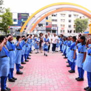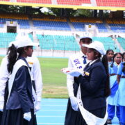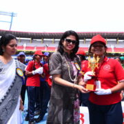 The day’s events began with a solemn prayer, invoking blessings for a successful event. This was followed by the hoisting of the National Flag and School Flag, as the crowd stood united in respect. The torch relay and March Past were a visual delight, as the four houses — Deepanjali, Gyananjali, Premanjali, and Pushpanjali — marched in perfect synchrony, proudly showcasing their strength, unity, and vibrant house spirit. The ceremonial lighting of the torch by the Chief Guest marked the official opening of the Sports Day. Followed by the oath-taking ceremony which reflected the students’ commitment to compete with integrity and uphold the values of sportsmanship.