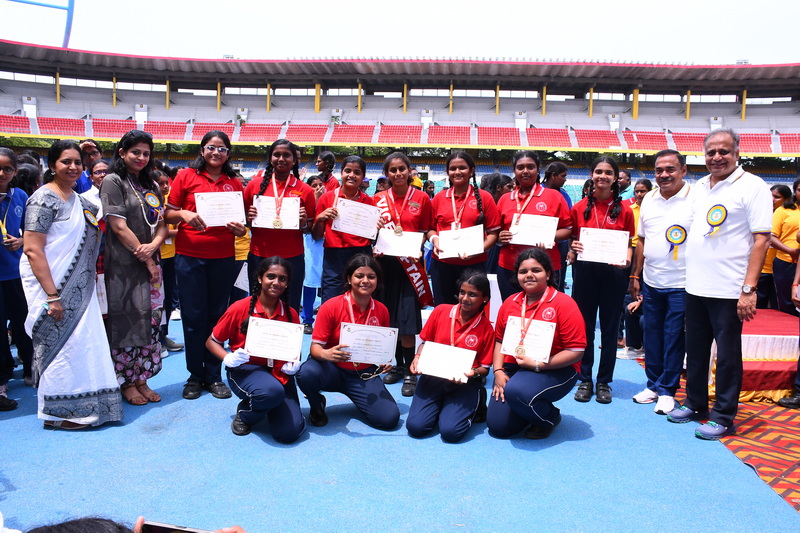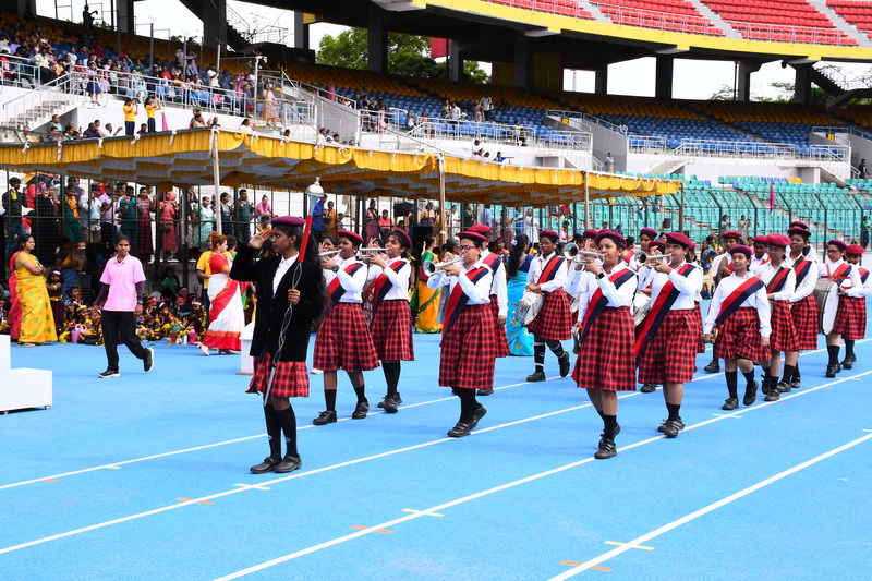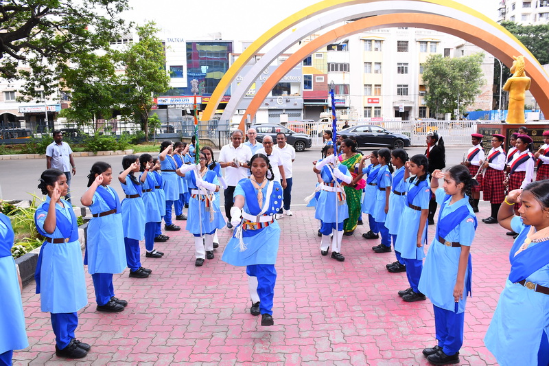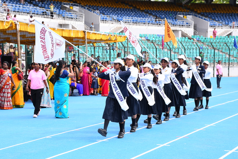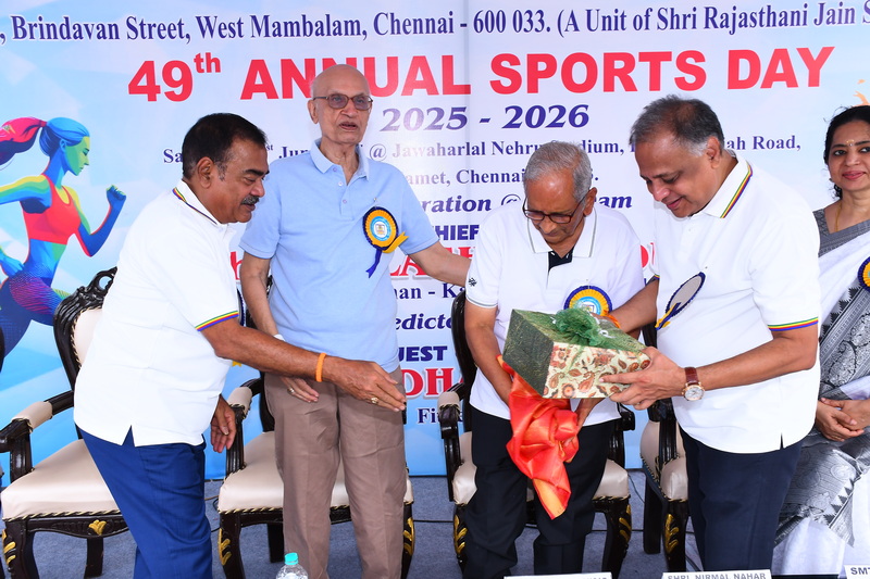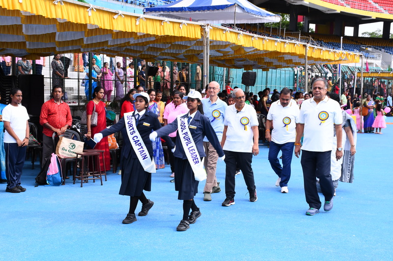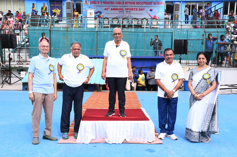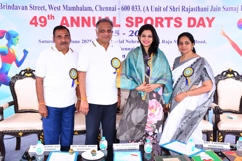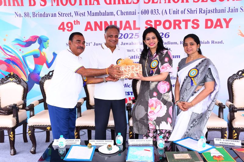 The 49ᵗʰ Annual Sports Meet was graced by the presence of our esteemed Chief Guest, Shri Kailash Mull Dugar, and our distinguished Guest of Honour, Mrs. Dhanya Ajay. The management members of the school, Managing Trustee Shri Paras Singh Munoth, Secretary Shri Nirmal Nahar, Correspondent Shri Rajkumar Jain, and Principal Mrs. Deivanai, extended a warm welcome and honoured the presence of the dignitaries.