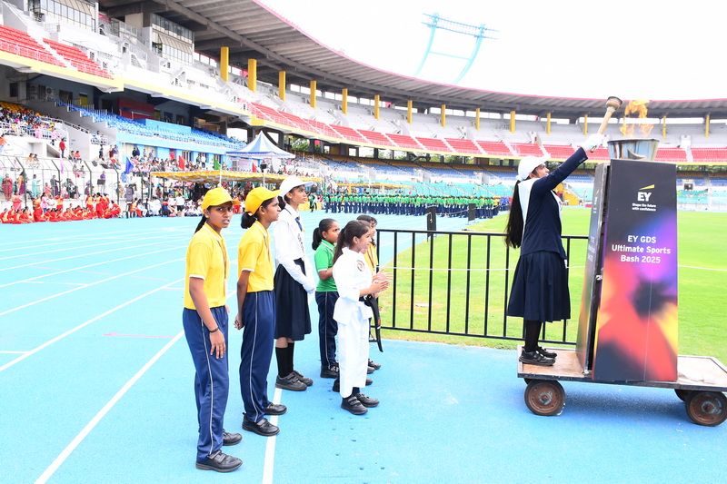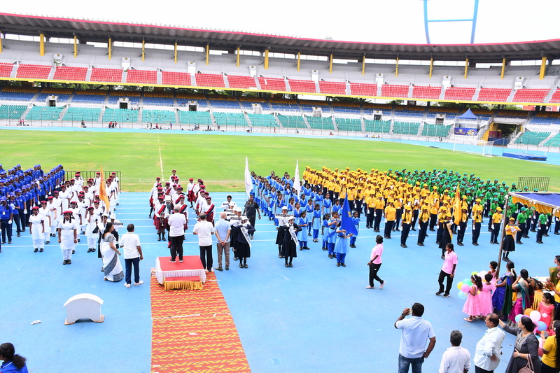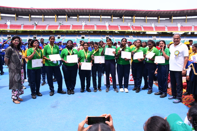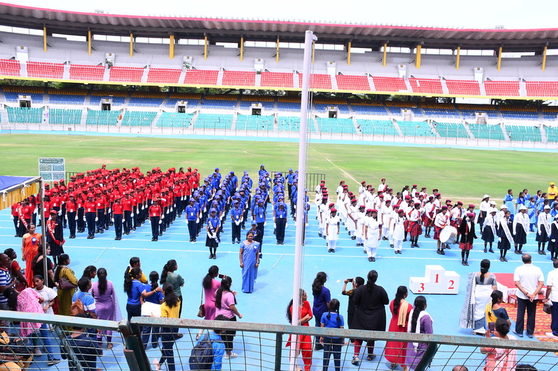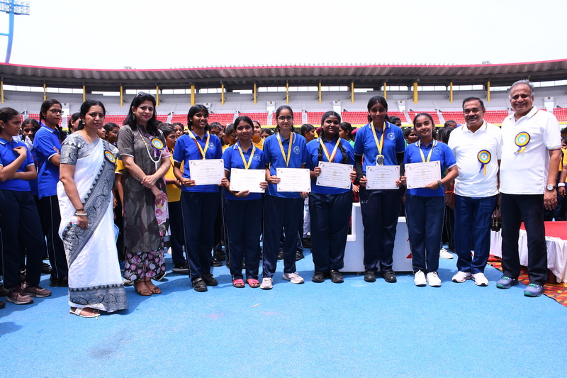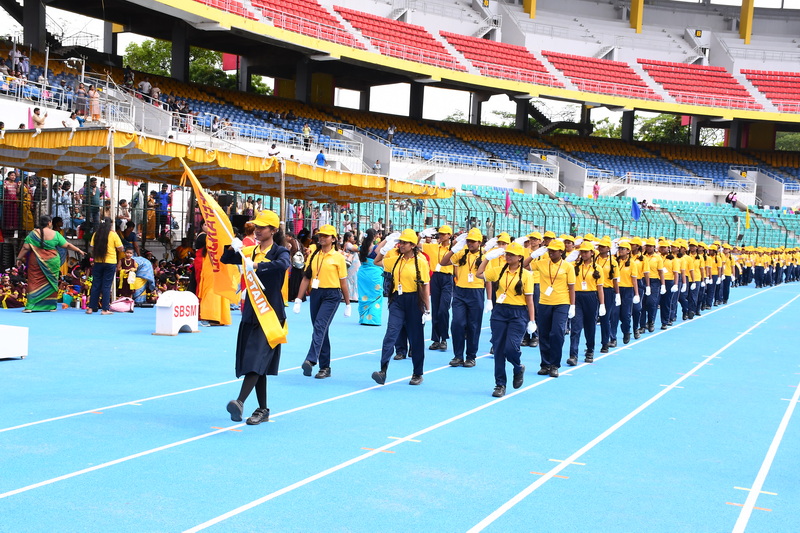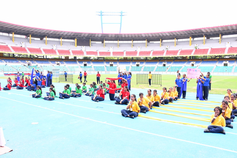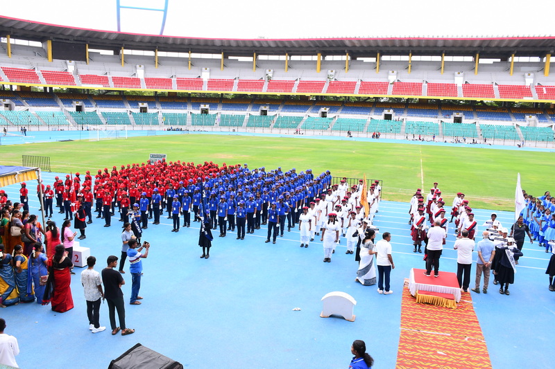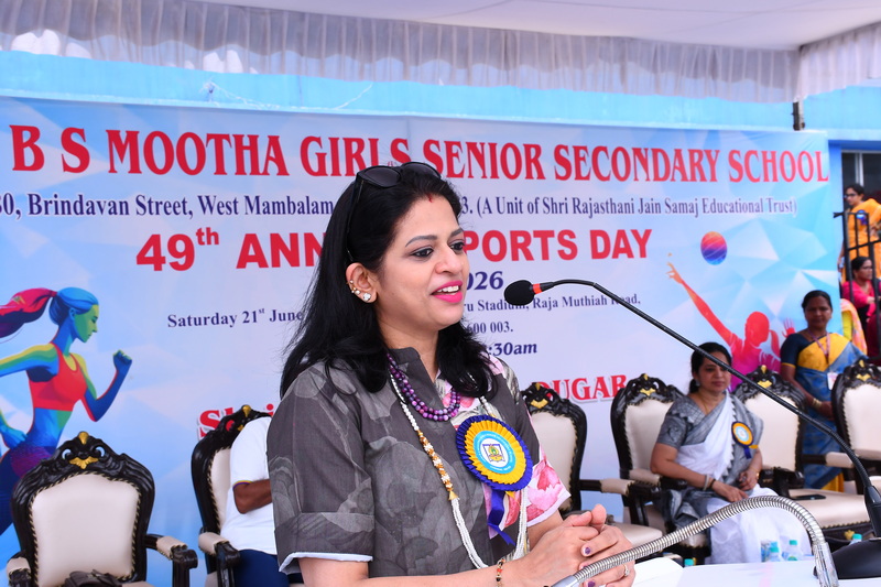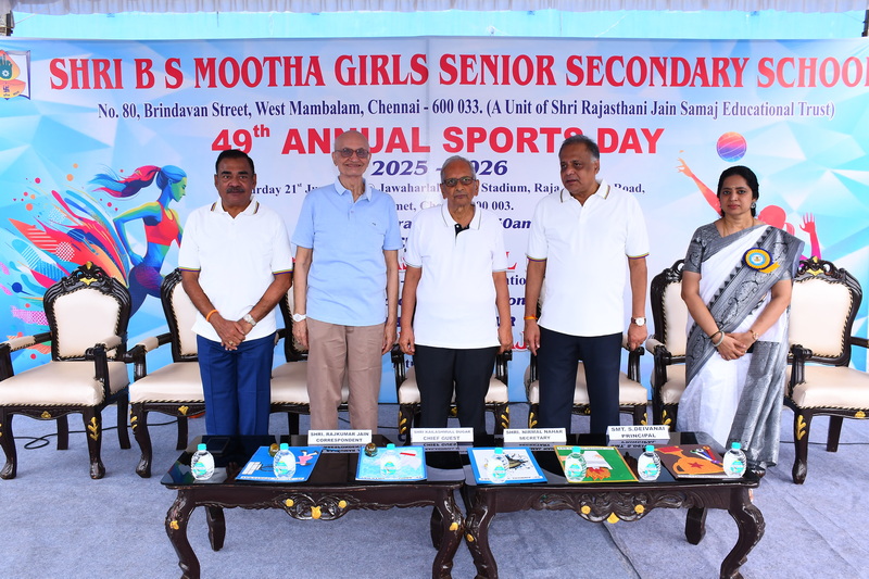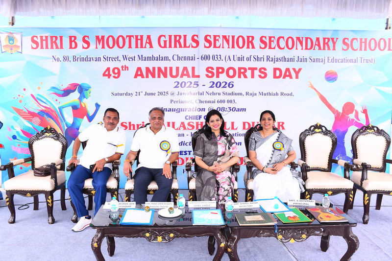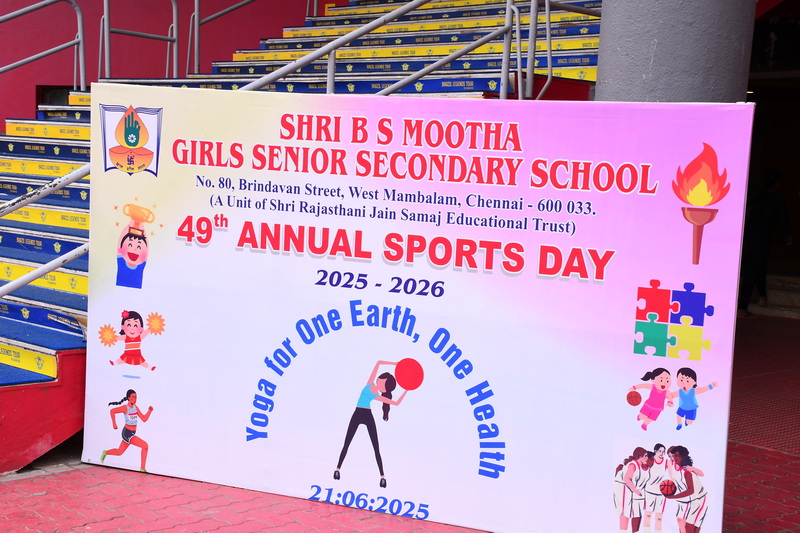 Shri B. S. Mootha Girls’ Senior Secondary School celebrated its 49ᵗʰ Annual Sports Day with tremendous energy and grandeur on 21ˢᵗ June 2025 at Nehru Stadium, Chennai. The day carried double significance as it coincided with International Yoga Day, celebrated under the theme “Yoga for One Earth, One Health.” The stadium came alive with colour, movement, and emotion as students, teachers, parents, and dignitaries gathered to witness a spectacular display of sportsmanship, fitness, and unity.