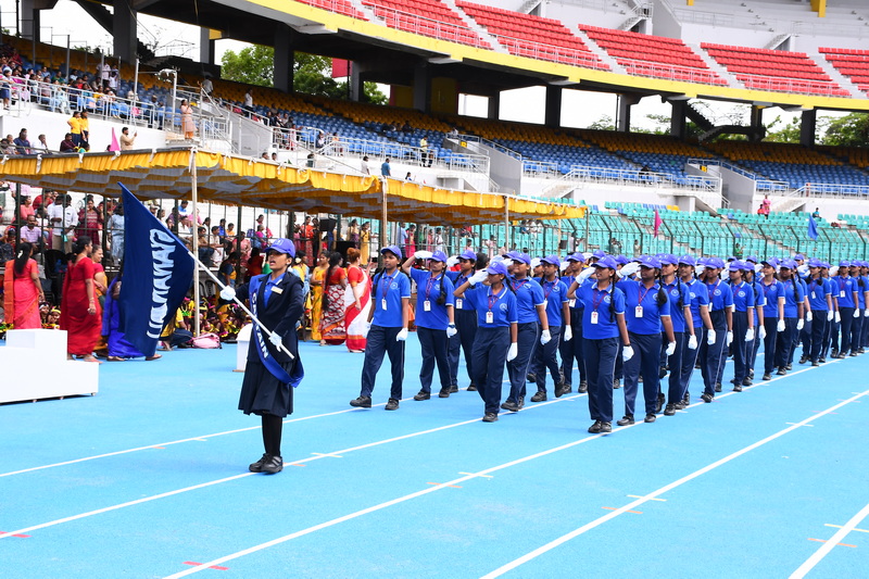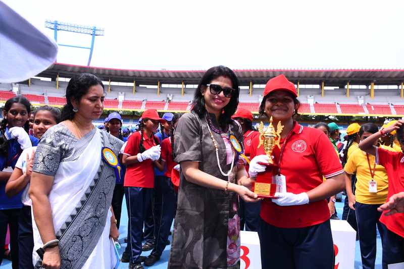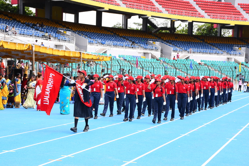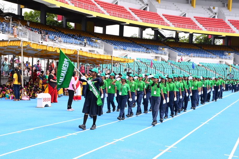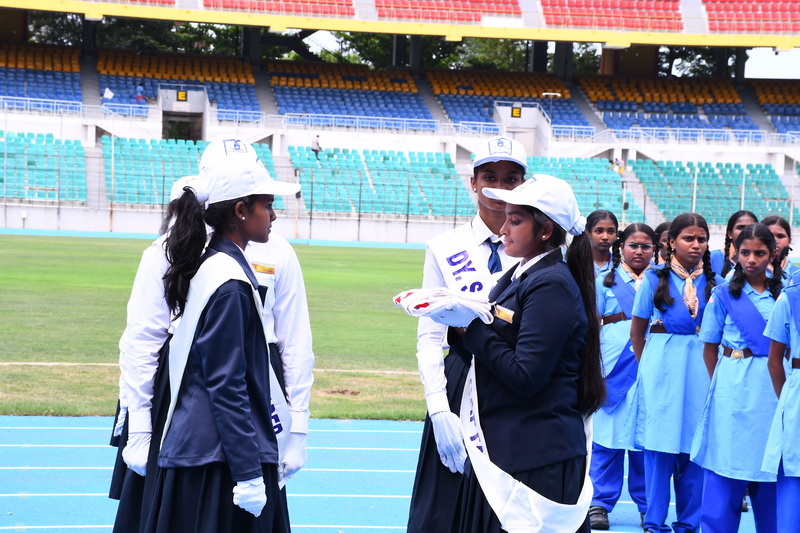 The event culminated with the grand prize distribution ceremony. Dignitaries honoured winners with medals and trophies for excellence in various events. Awards for Best Drill, Best March Past, Individual Champions, and the prestigious Overall Championship Shield were presented amidst loud cheers and applause. The ceremonial lowering of the house and school flags marked the official conclusion of the event. In a moment of grace and symbolism, the flags were respectfully handed over to the Principal Smt Deivanai by the student leaders, echoing the values of leadership and legacy.