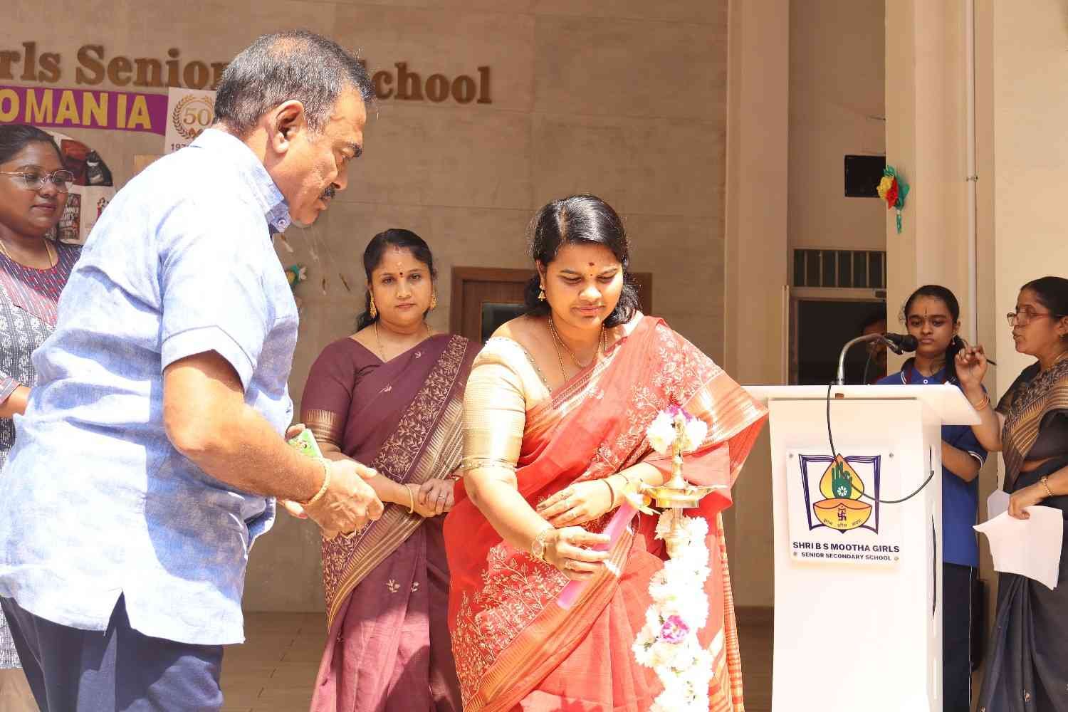 The event commenced at 9:30 a.m, with a warm reception of the Chief Guest, Ms Nisha P Sekar a dynamic journalist from The Federal. The programme was presided over by the School Correspondent, Sri Raj Kumar Ji Jain, along with the Principal, Mrs Rohini Muthusamy, the Vice Principal, Mrs Maheswari, and the Head of the English Department, Ms Aparajitha.