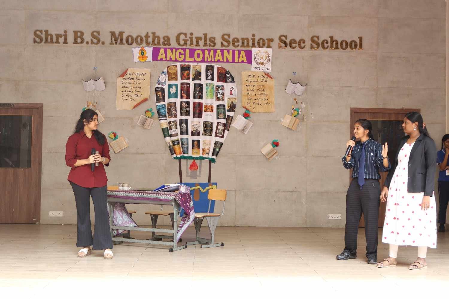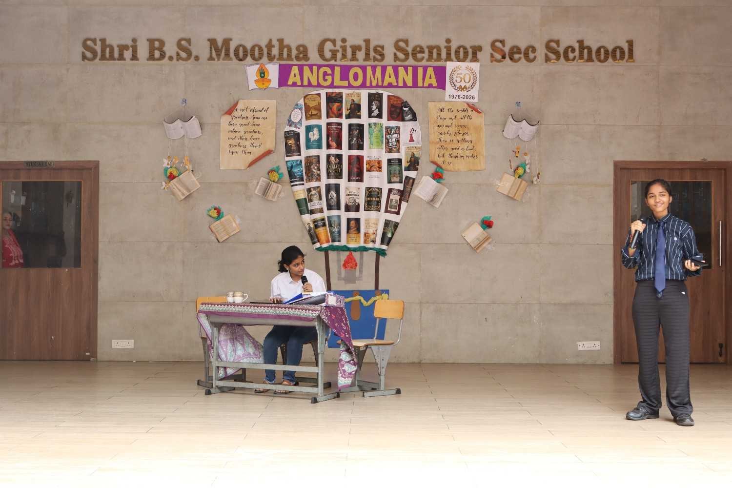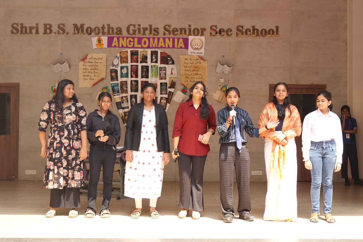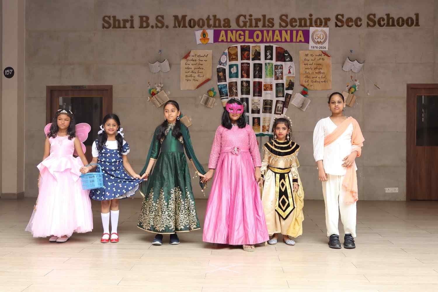 Anglomania, the Literature Day celebration, was held on 25th April 2026. As part of the Golden Jubilee Year of Shri BS Mootha Girls Sr. Sec. School marked the first major event of the academic year, showcasing a vibrant array of literary activities. The programme featured Rhymes and Elocution by KG children, Storytelling by students of Classes 1 and 2, Role Play, Book Reviews and Theatre Play.