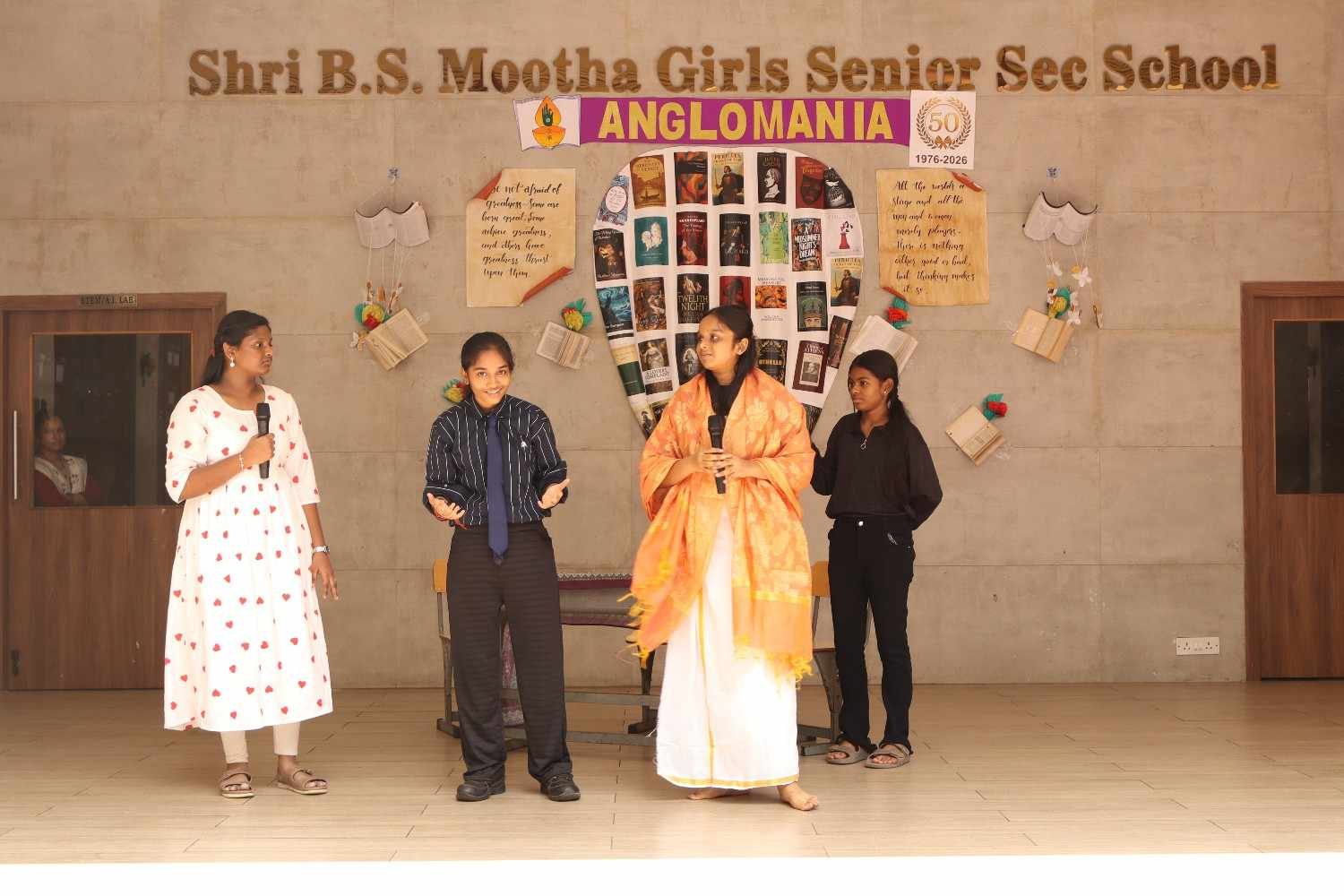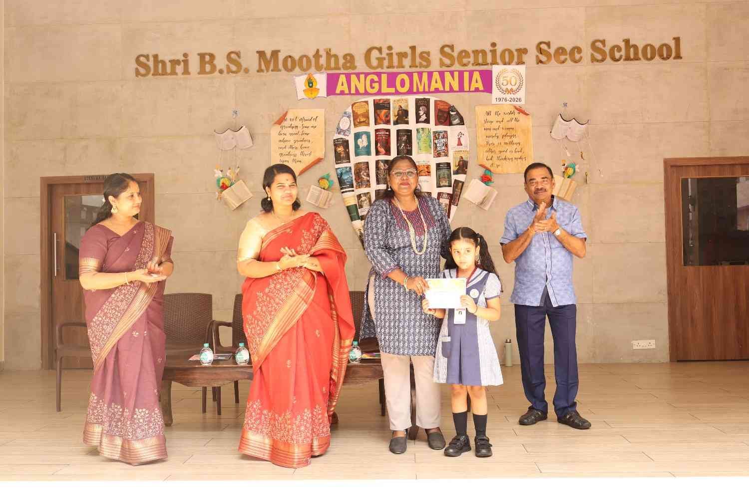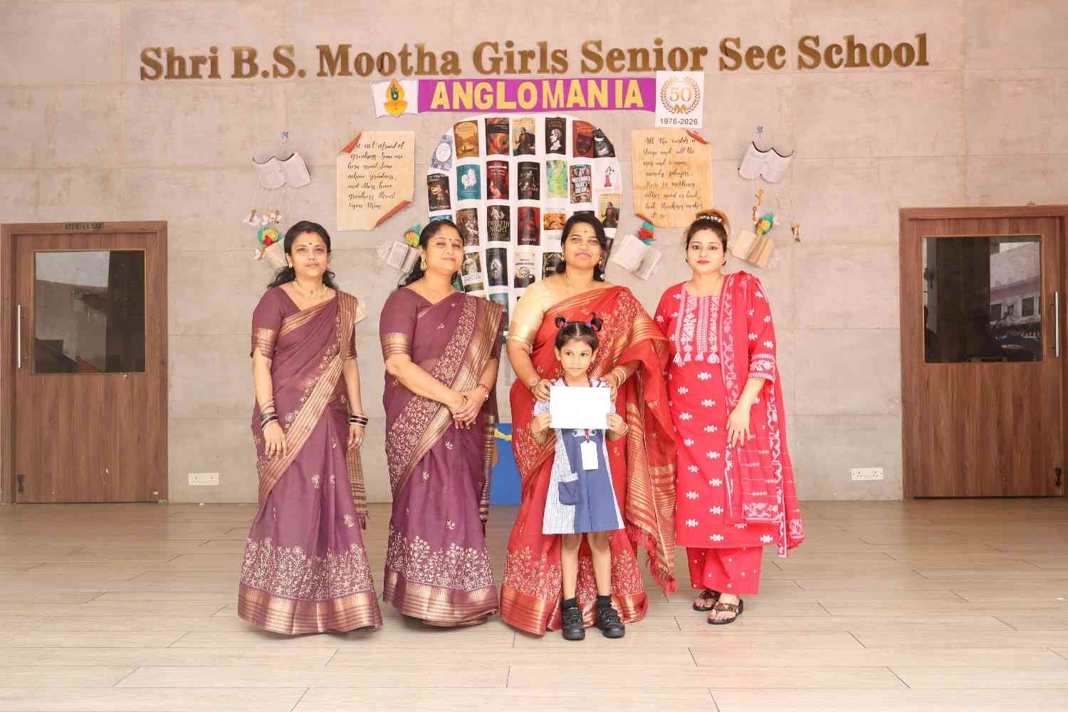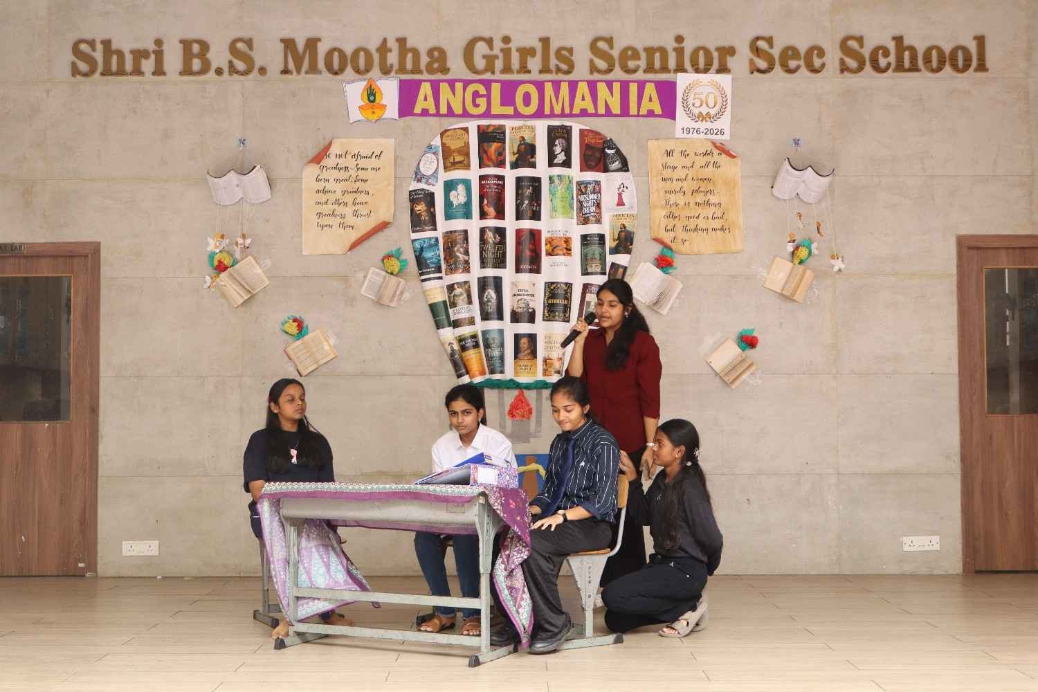 Anglomania, the Literature Day celebration, was held on 25th April 2026. As part of the Golden Jubilee Year of Shri BS Mootha Girls Sr. Sec. School marked the first major event of the academic year, showcasing a vibrant array of literary activities. The programme featured Rhymes and Elocution by KG children, Storytelling by students of Classes 1 and 2, Role Play, Book Reviews and Theatre Play.
