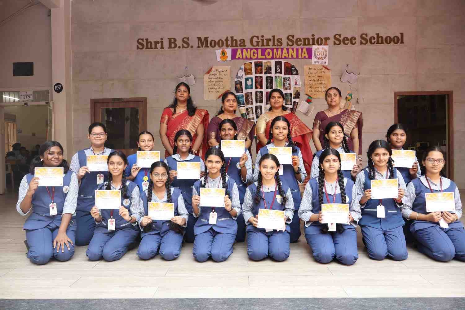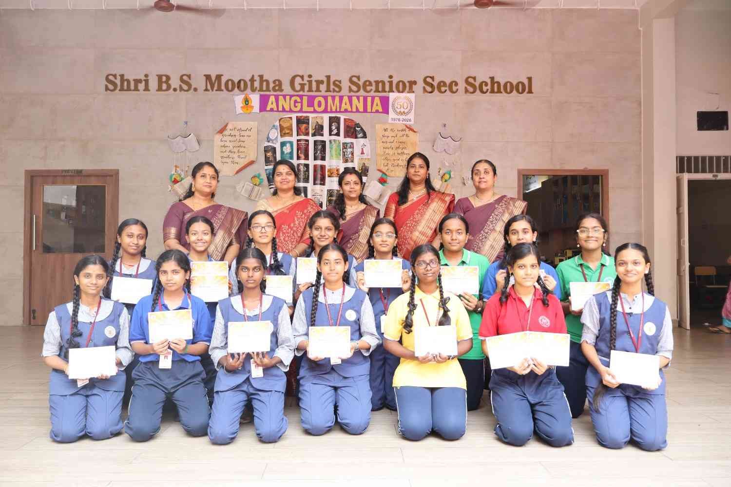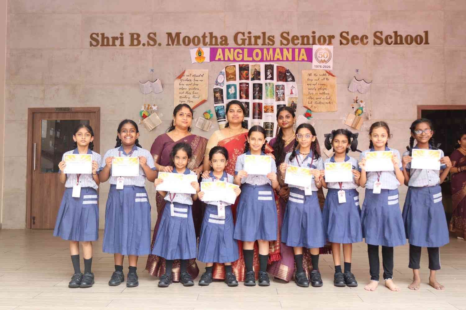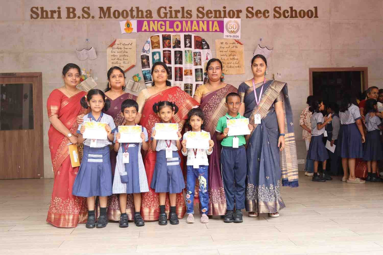 Anglomania, the Literature Day celebration, was held on 25th April 2026. As part of the Golden Jubilee Year of Shri BS Mootha Girls Sr. Sec. School marked the first major event of the academic year, showcasing a vibrant array of literary activities. The programme featured Rhymes and Elocution by KG children, Storytelling by students of Classes 1 and 2, Role Play, Book Reviews and Theatre Play.