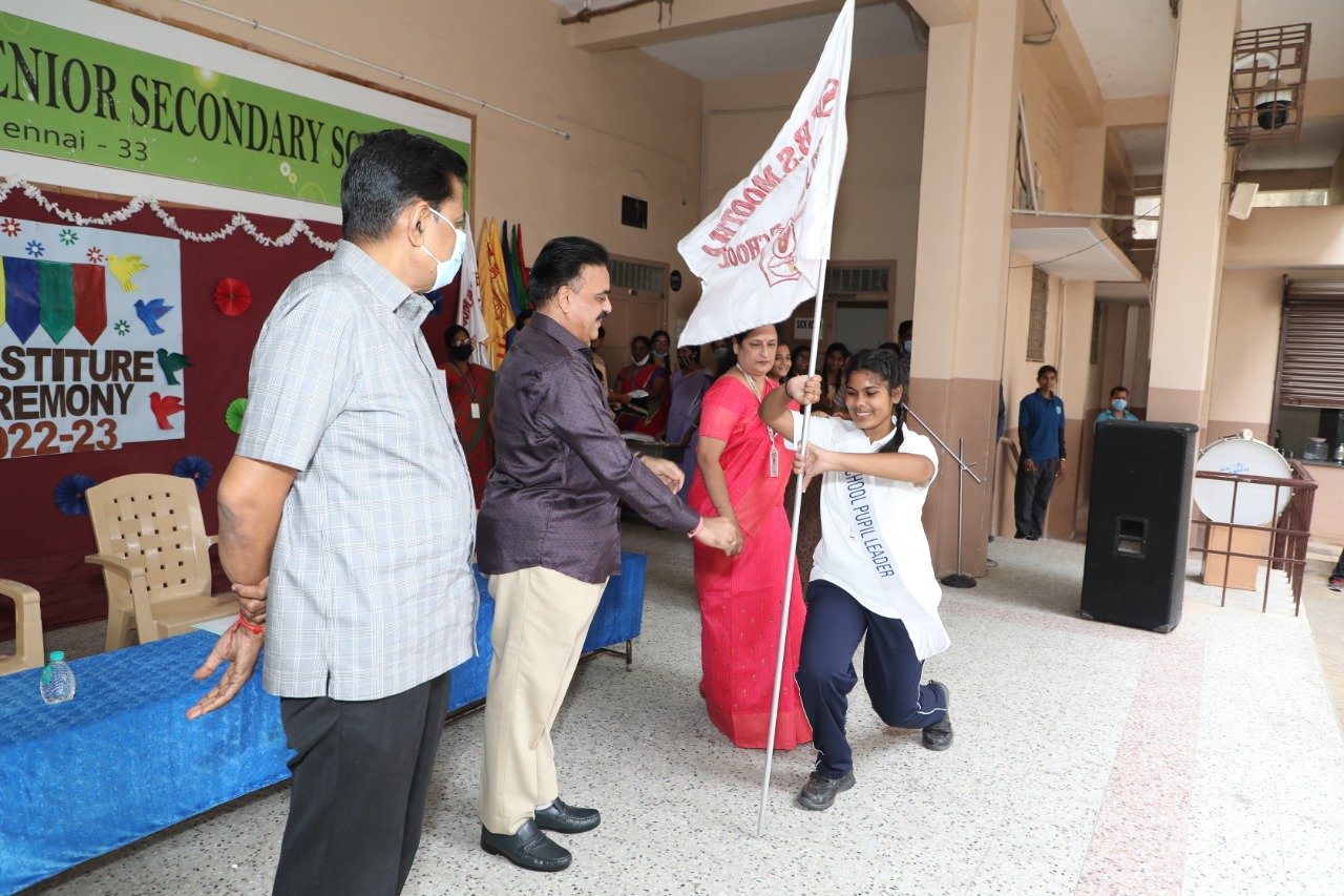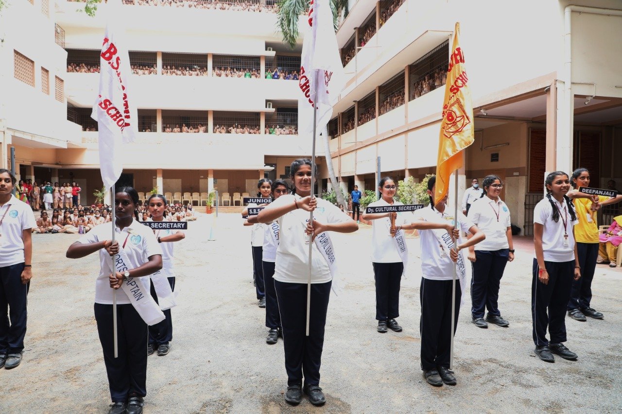 The elected leaders were conferred with badges, flags, placards and sashes bythe Management members and the Principal. The school council members took the oath with a promise that they would carry out their duties with integrity, faith and excellence. Parents of the elected school council members were present for the ceremony. The Management members and Principal congratulated the newly elected members with their golden view which would help the students to make their vision clear for the achievement of their goal by performing their duties with full dedication. School Pupil Leader Laksha Jain of XII std, spoke on the occasion, promising to fulfil the duties of the Student Council. The occasion came to an end with the vote of thanks.