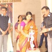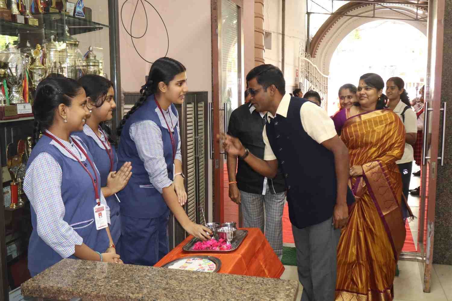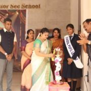The ceremony commenced with a soulful invocation, setting a serene and uplifting tone for the occasion. The event was graced by the esteemed Chief Guest, Dr. C. Vijay, Founder and CEO of SMART 7 Wellness, in the august presence of the respected Correspondent, Shri Raj Kumar Jain; the revered Principal, Ms. Rohini Muthusamy; the illustrious Vice Principal, Ms. Maheswari; and other distinguished dignitaries.