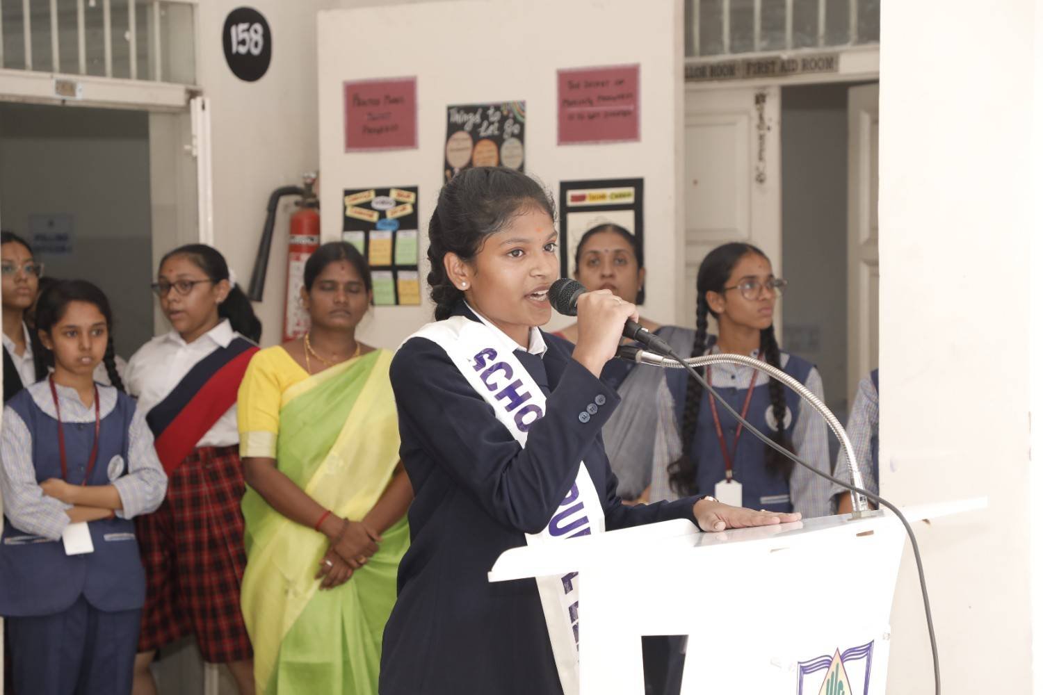 Joshitha H, the School Pupil Leader, addressed the gathering with grace and conviction, expressing heartfelt gratitude and a firm resolve to lead with integrity and dedication.