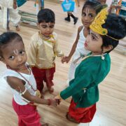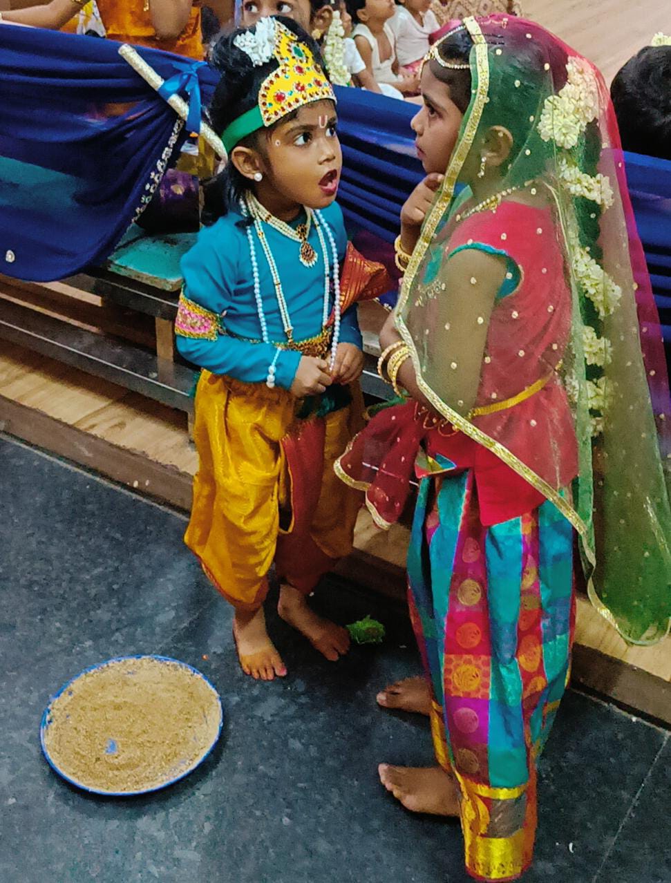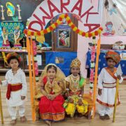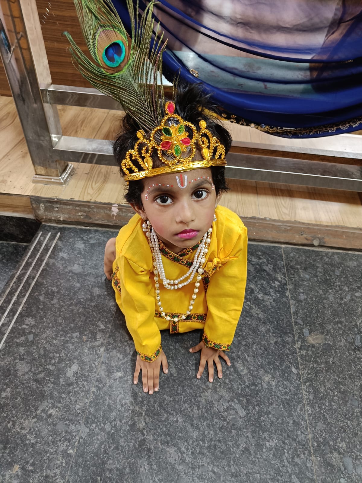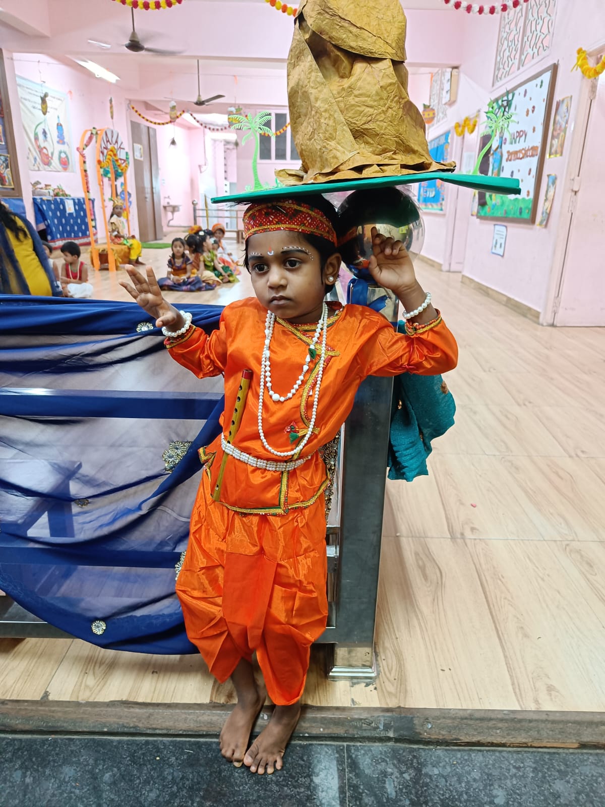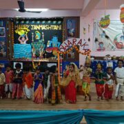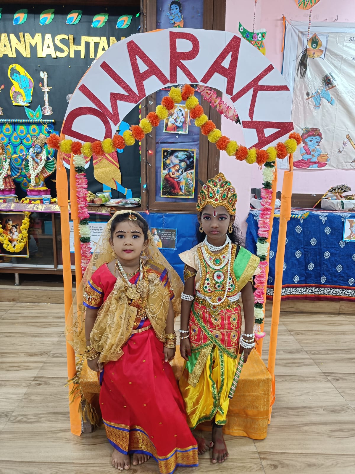 SBSM kindergarten celebrated Janmashtami in a grand way on 4th September 2023 at SSVJ block activity area. Children dressed up as little Krishnas and Radhas were the feast for the eyes. The arena was beautifullly decorated with variety of flowers, charts, lord krishna’s images, quotes etc. Pooja was performed for the idol of krishna by our beloved Principal mam. The skit performed by the children on the bonding between Lord Krishna and his friend Sudhama was a splendid show. The divine dance Rasaleela was mind blowing and was the highlight of the Janmashtami celebrations.
