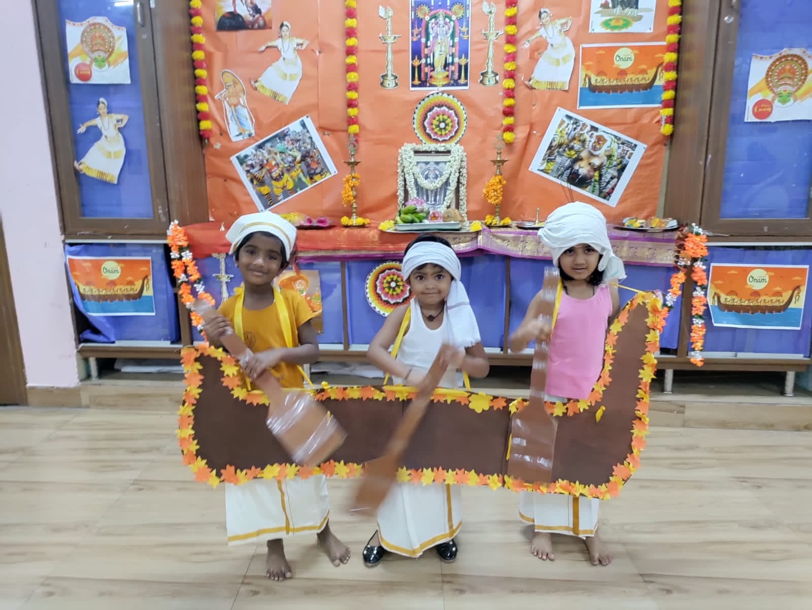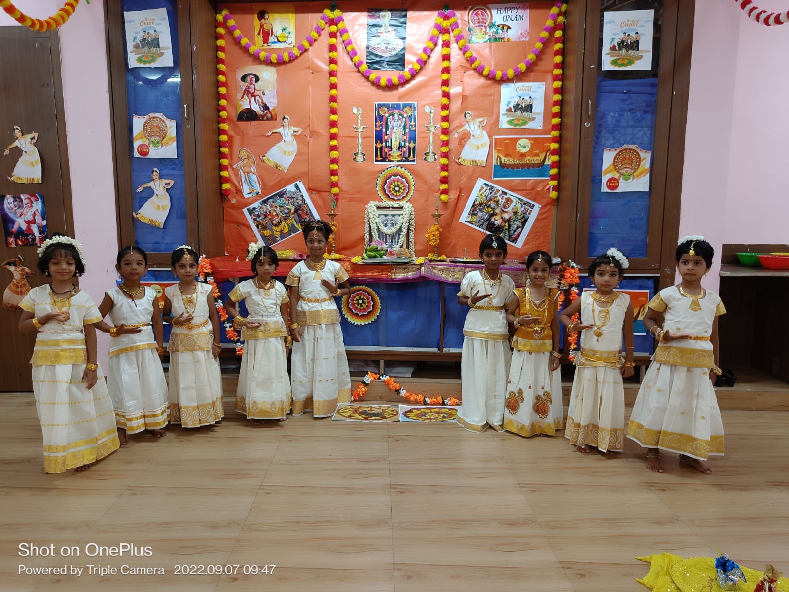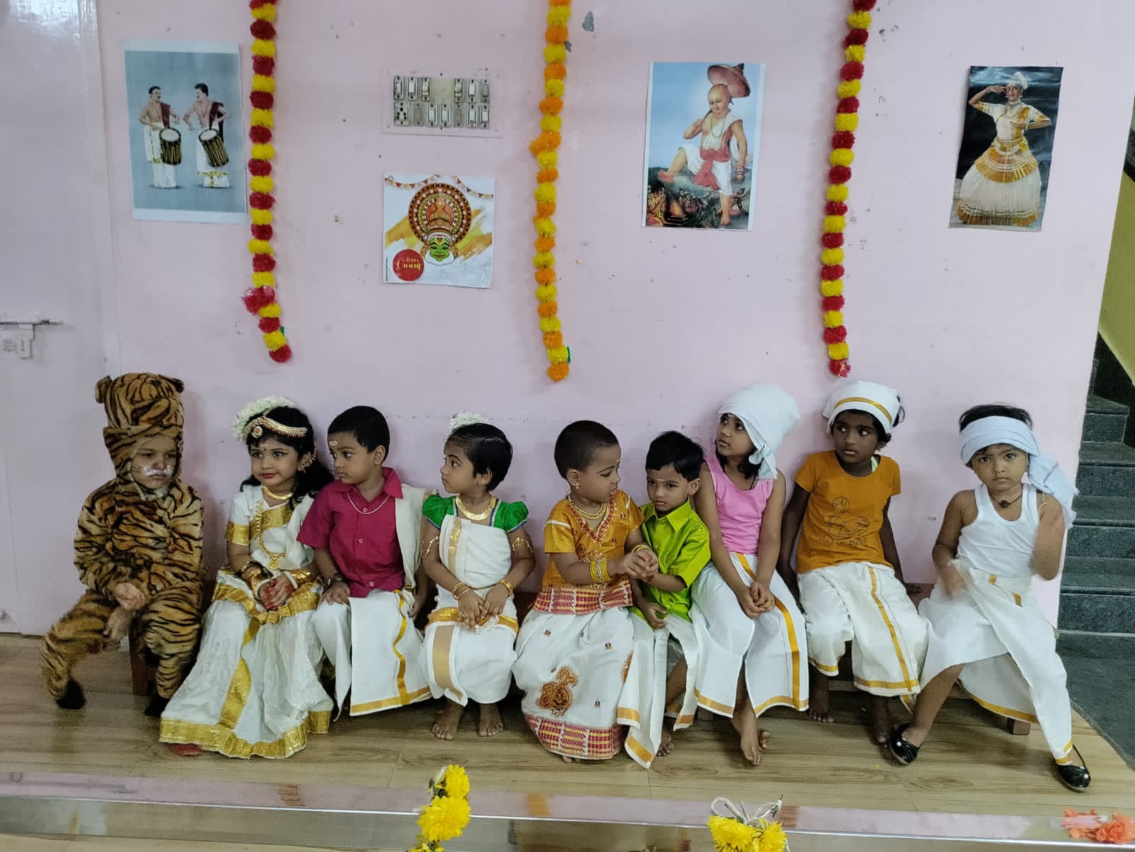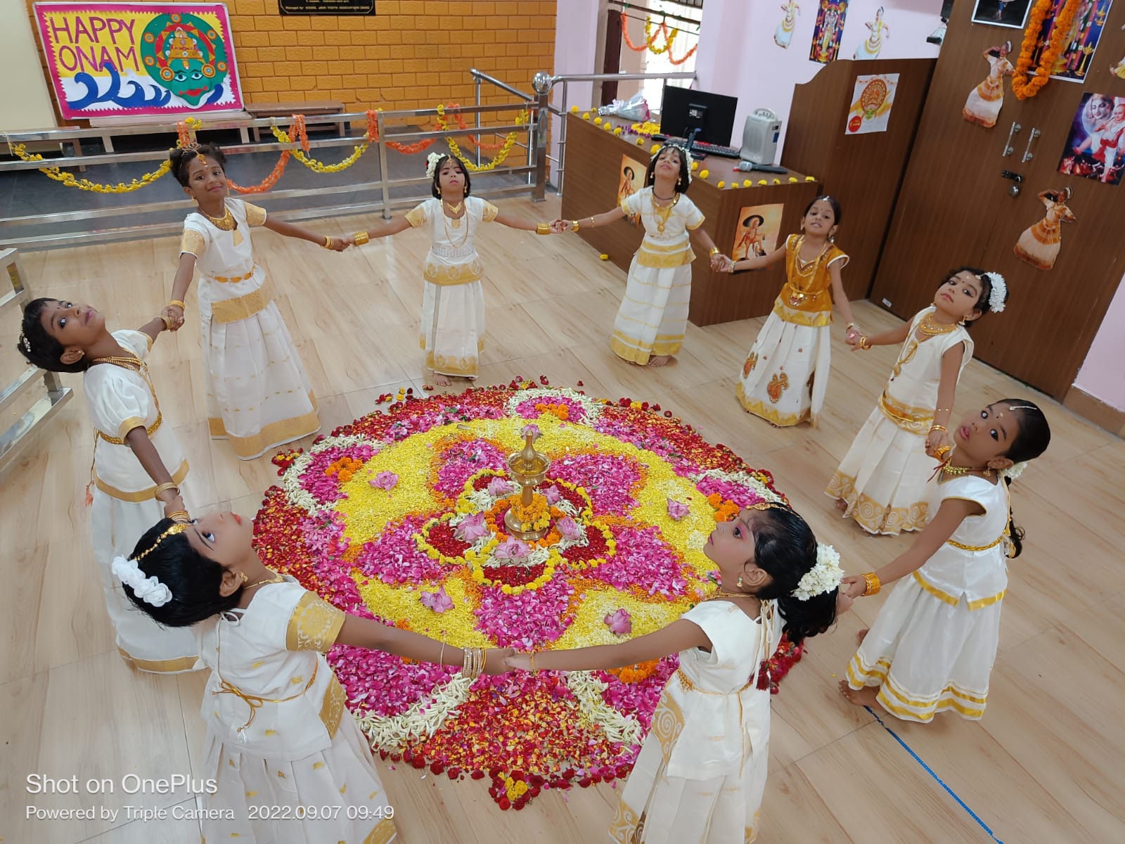 The Onam festival is an occasion for people to remind themselves of the presence of divinity and nature together. Kg department celebrated onam on 07.09.22 – Wednesday. Management members, Principal and Coordinator took part in the small Pooja before the function.