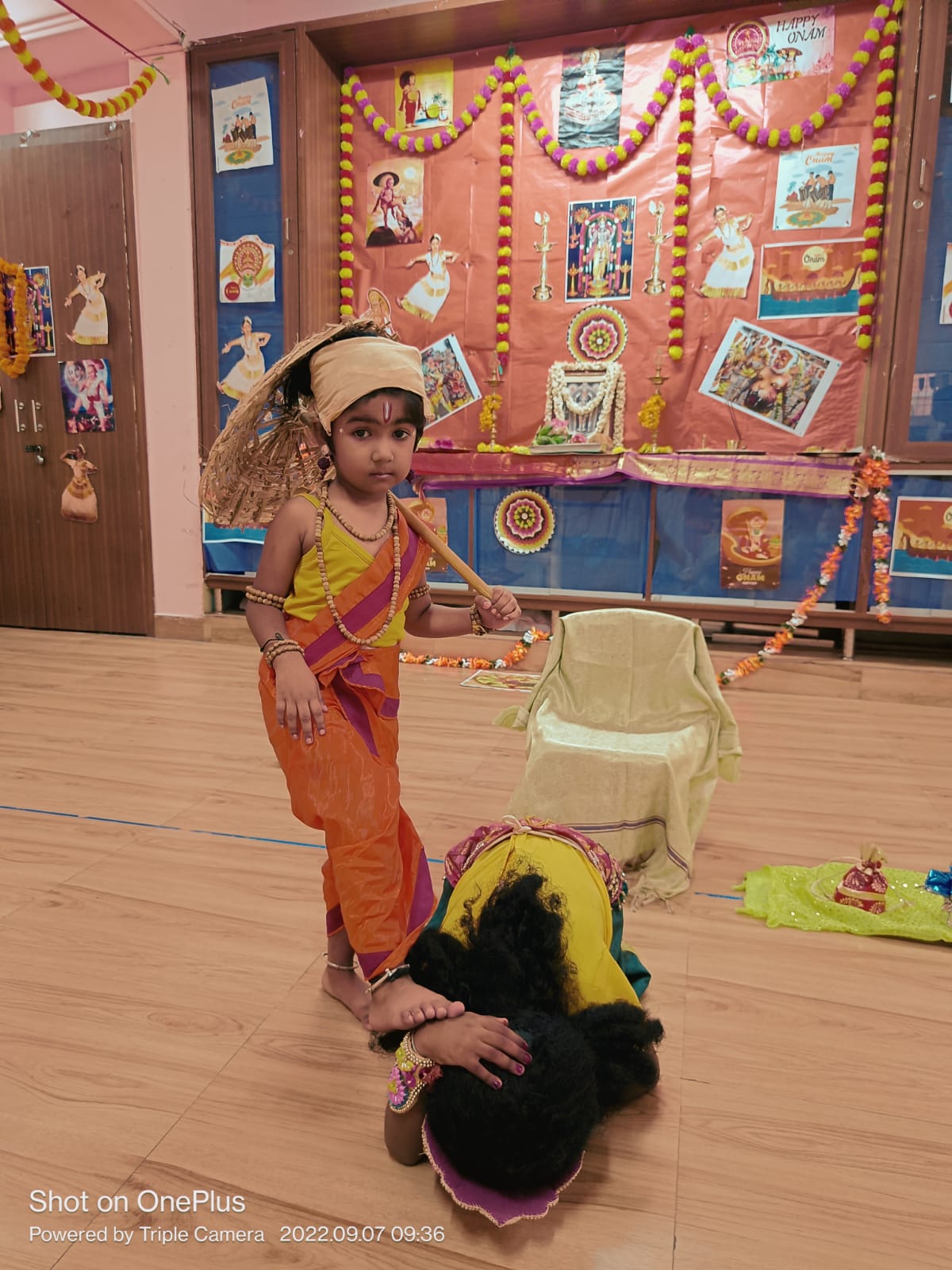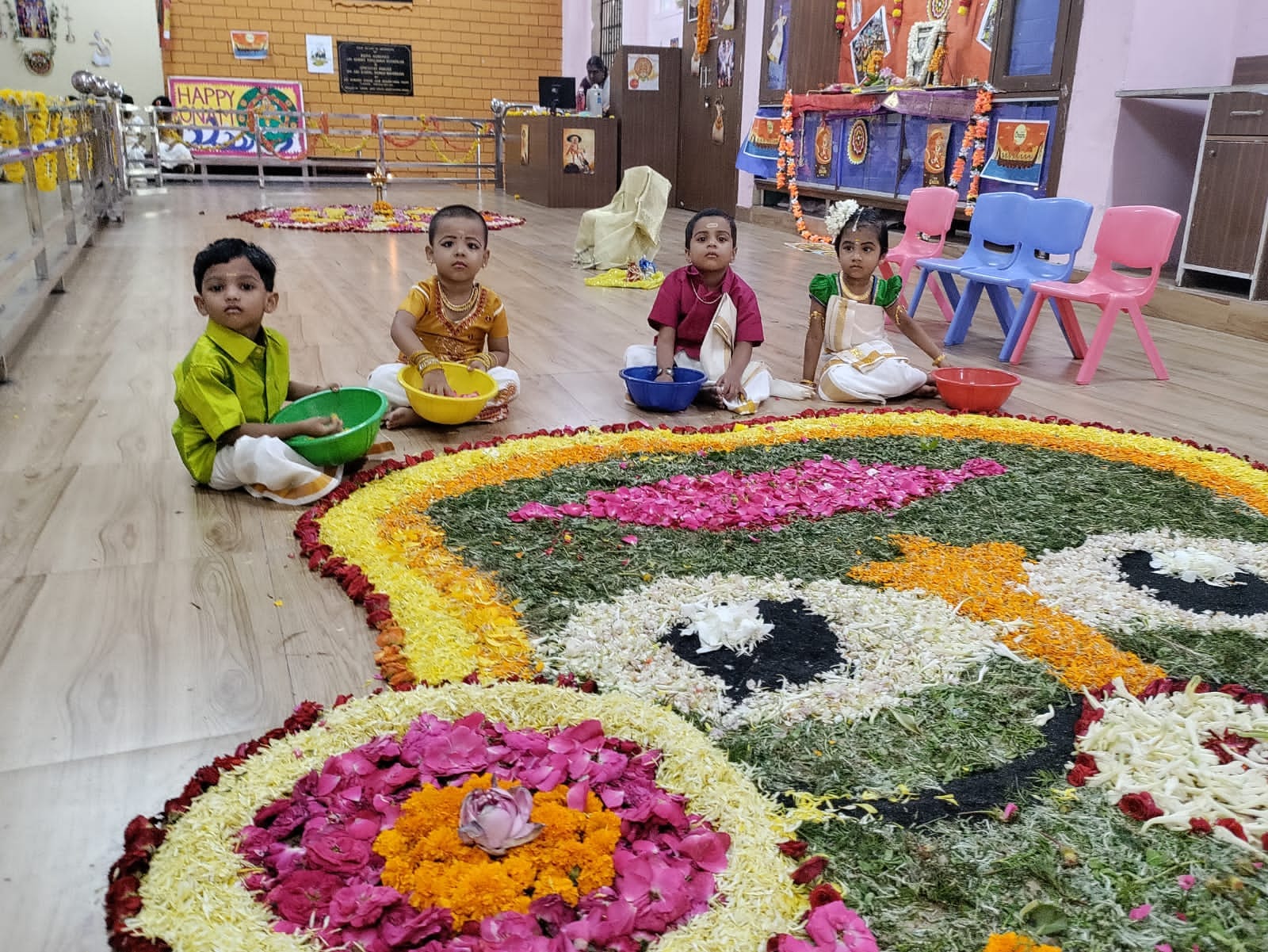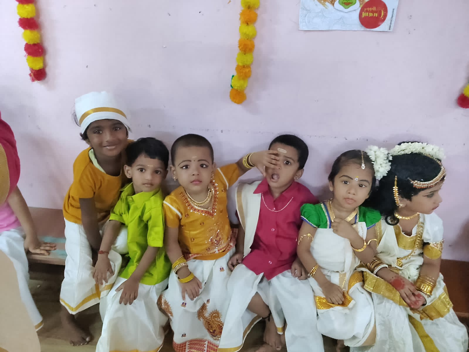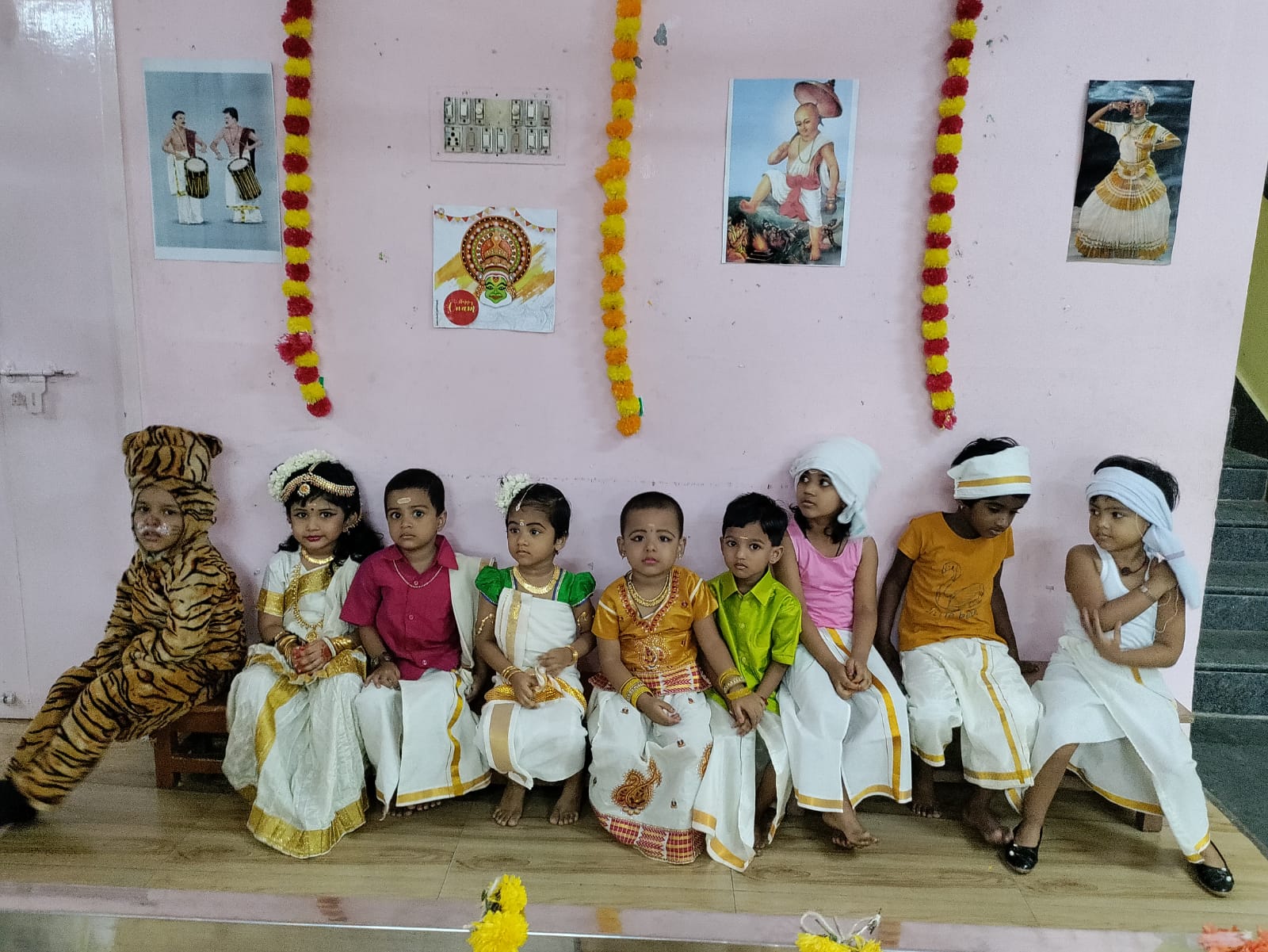 The Onam festival is an occasion for people to remind themselves of the presence of divinity and nature together. Kg department celebrated onam on 07.09.22 – Wednesday. Management members, Principal and Coordinator took part in the small Pooja before the function.