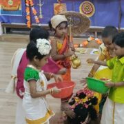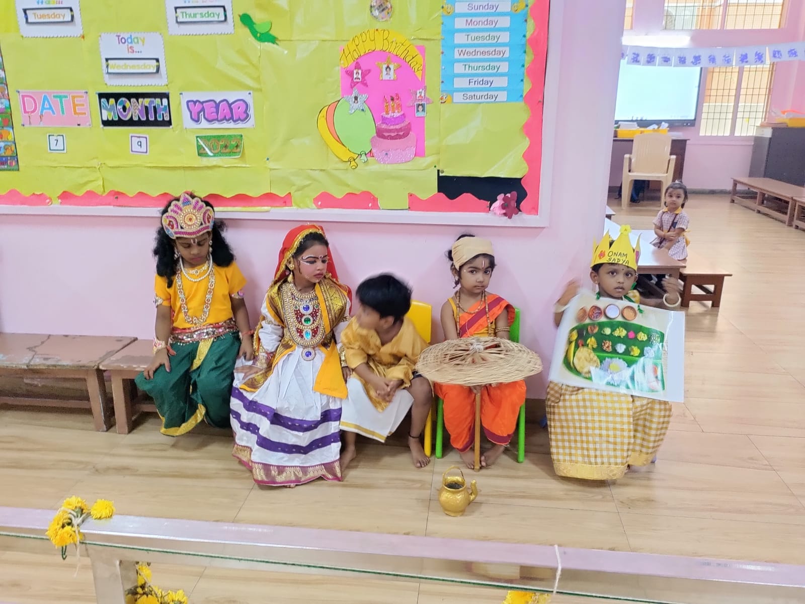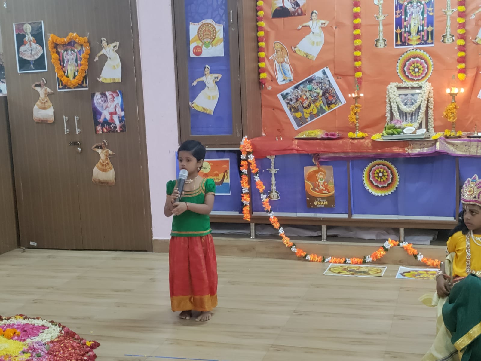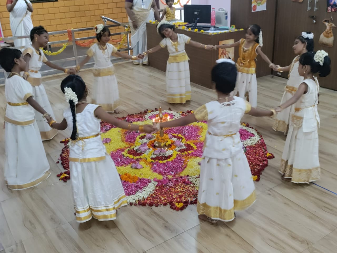 Kids enacted the story of the legendary King Mahabali. The different festivities during onam like pookalam, mohiniattam, kathakali, pulikali, kaikottikali dance, boat races etc. were the highlights of the celebration. The whole arena was colourfully decorated which was a feast to the eyes.