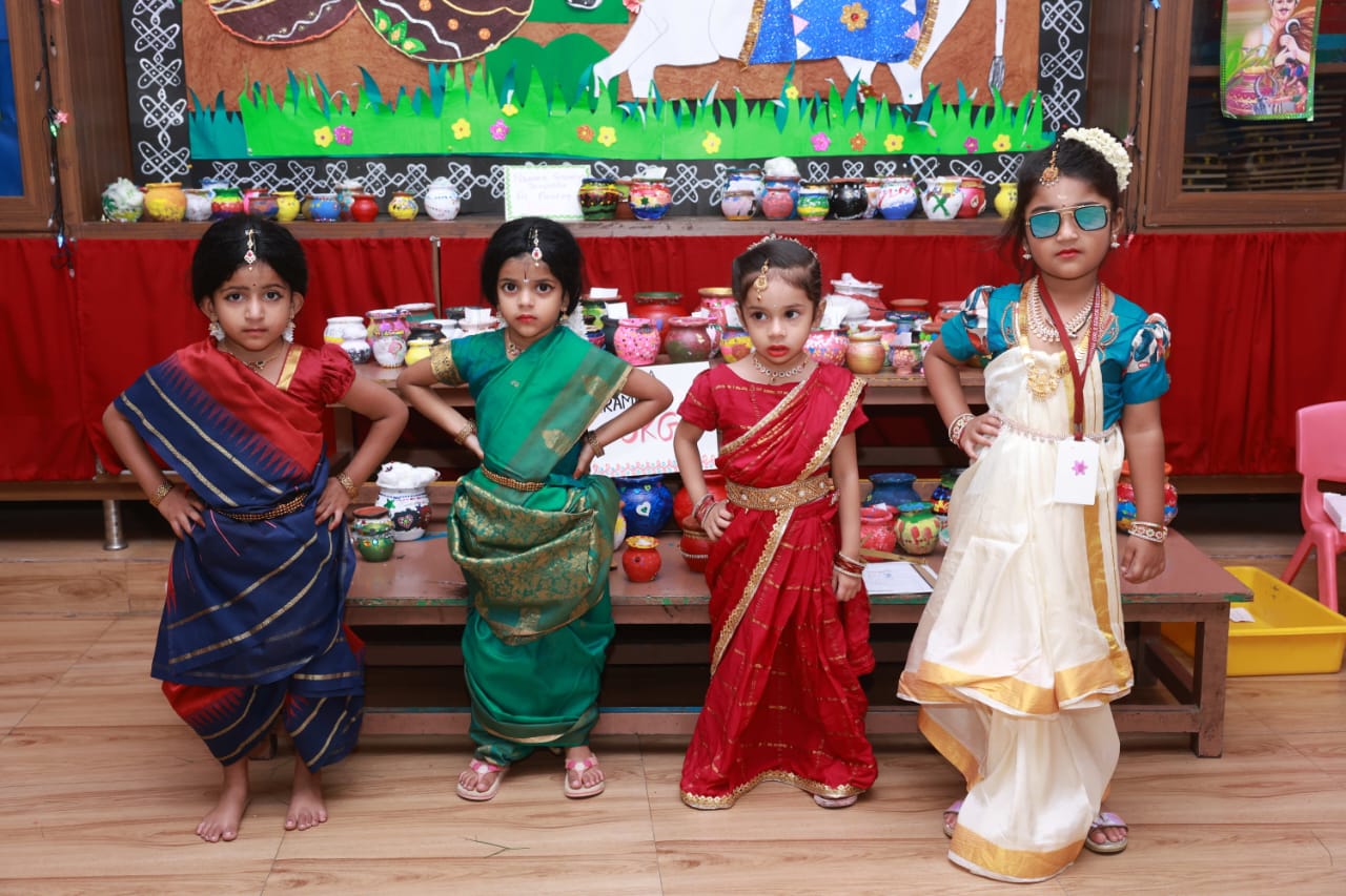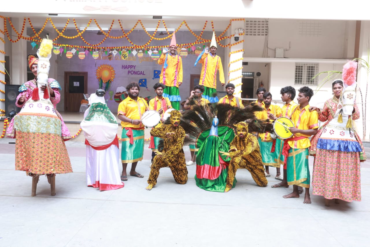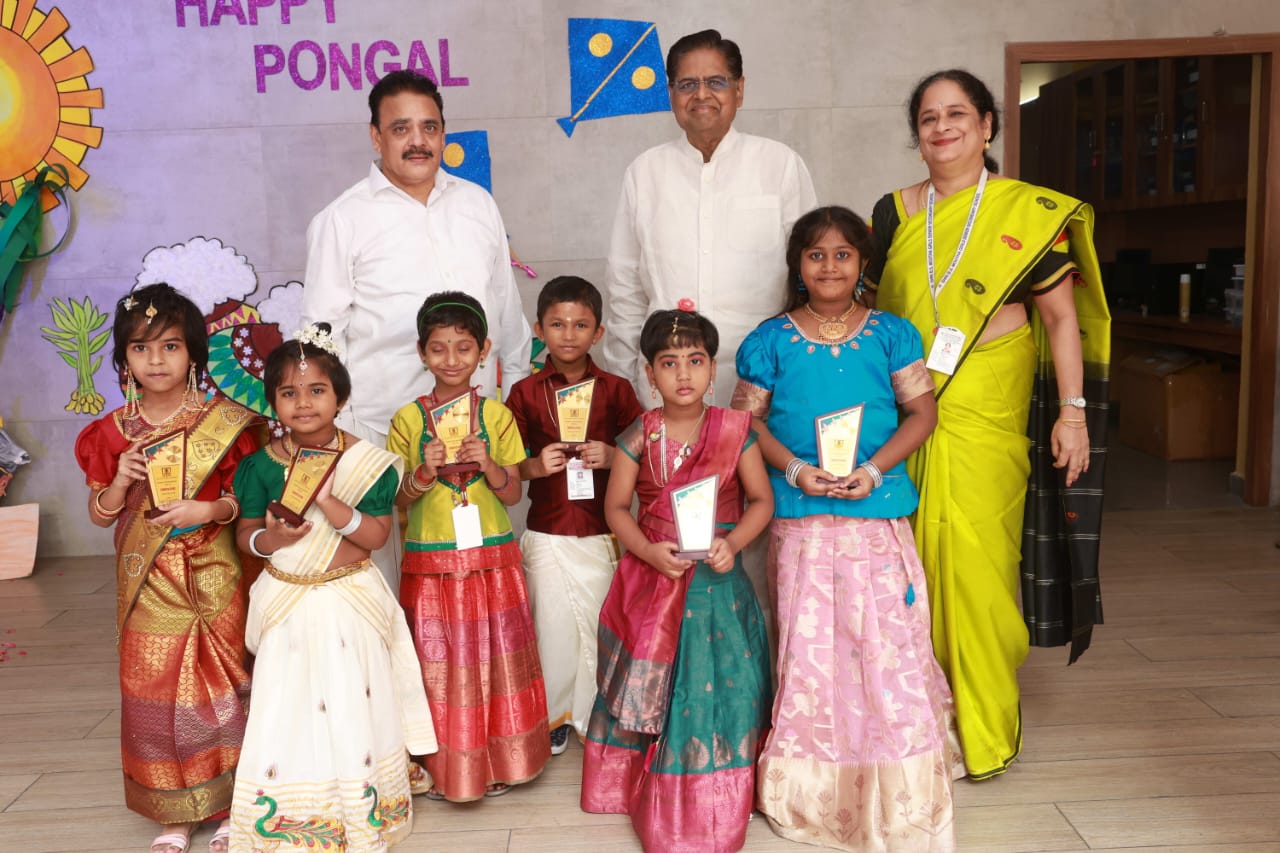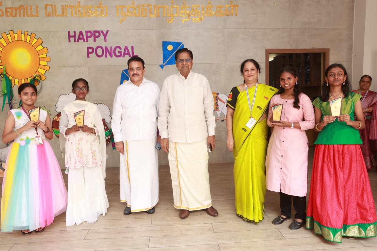 Pongal Celebrations The vibrant celebrations of “Namma Gramiya Pongal Thiruvizha” echoed through our school on January 13th, 2024. The school embraced a traditional village ambiance, students adorned in colorful traditional attire, and a unique “no bag day.” The event featured a variety of attractions, including captivating performances of Karagattam, Mayil Aatam, Kavadi Aatam, Oyil Aatam, Maadu Aatam, Poikalkuthirai Aatam, Naiyandi Melam, Kattai Kaal Aatam, and Puli Aatam by skilled village artists. Students actively participated in creative contests, showcasing their talents in pot painting and Pongal-themed Rangoli designs. These painted pots were displayed in prominent places throughout the school. Certificates were awarded to the winners. The “Haute Couture” competition – fancy dress – the traditional dress of any South Indian state, added an elegant touch as students proudly displayed traditional South Indian attire, celebrating their rich heritage. Cash prizes were awarded to the winners. An intra-school chess competition was also conducted and winners from each level were awarded a trophy and certificate. Cultural events, accompanied by traditional beats, included a delightful Karagam overhead procession. Complimentary food stalls contributed to the festive spirit, offering sweet Pongal, Ven Pongal, Masal Vadai, Sundal, Sambar, chutney and sugarcane juice, fostering a sense of love and community. A specially arranged DJ for students enhanced the festivities, providing enjoyment for all. The gala concluded on a positive note, leaving everyone filled with joy and a deep sense of cultural unity.