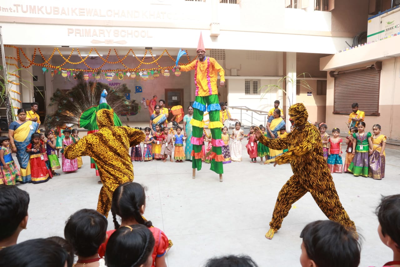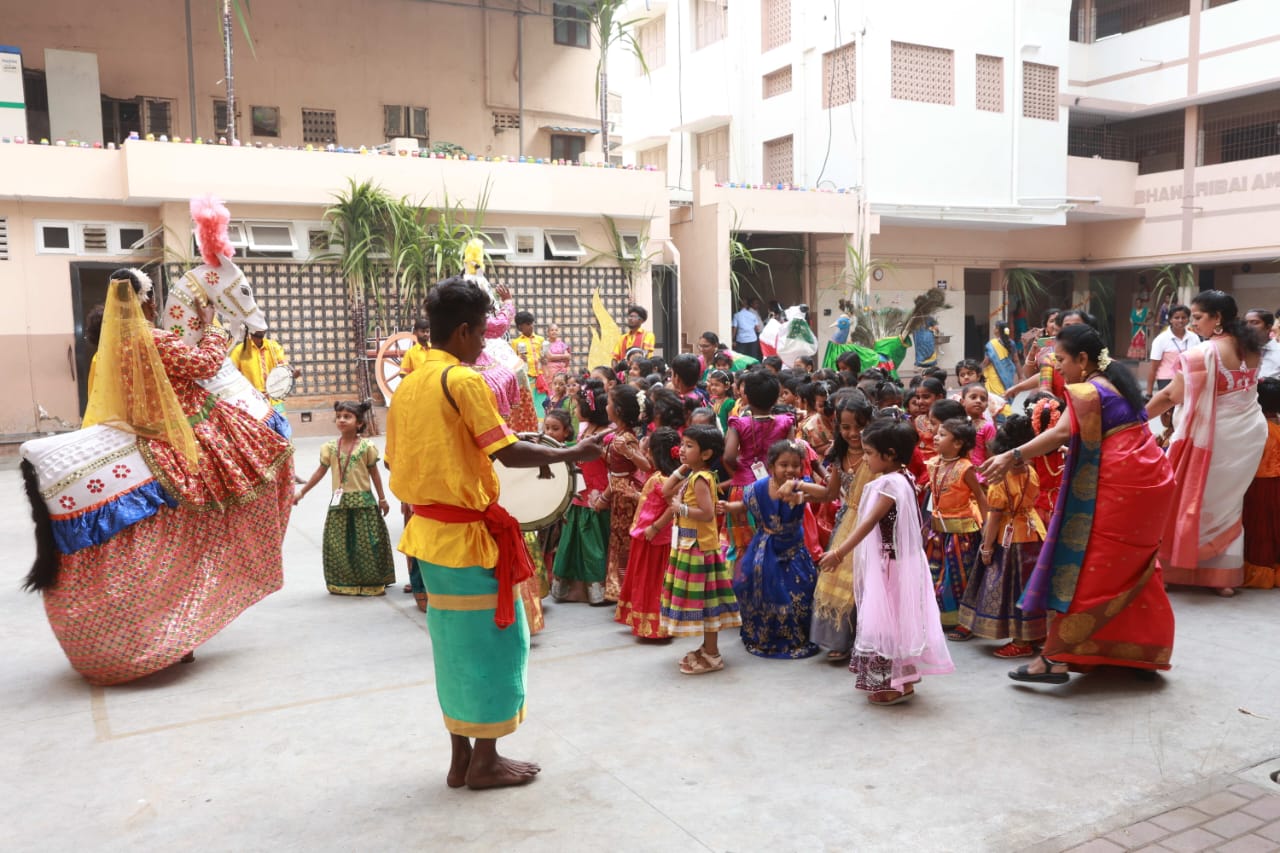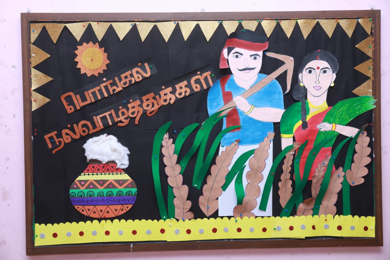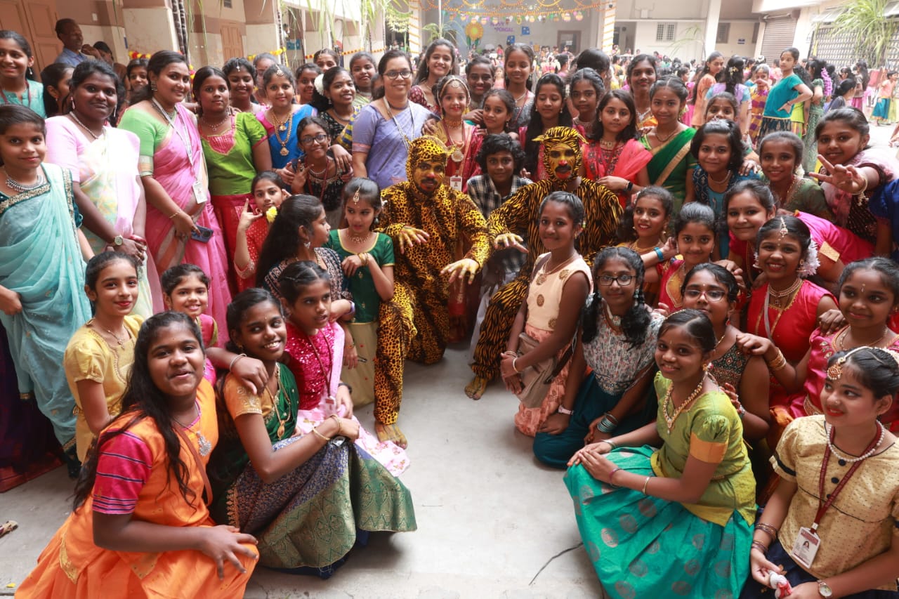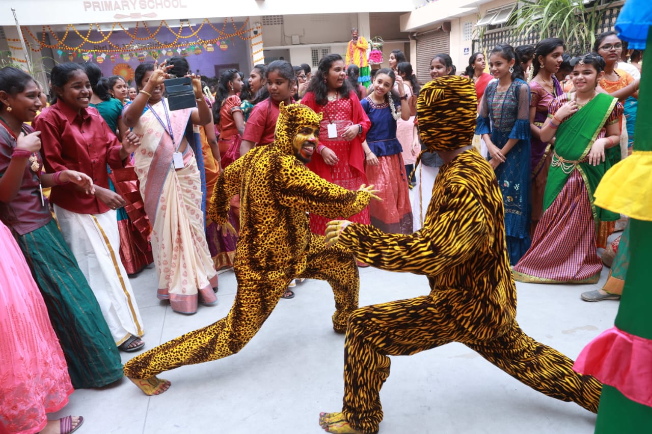 Pongal Celebrations The vibrant celebrations of “Namma Gramiya Pongal Thiruvizha” echoed through our school on January 13th, 2024. The school embraced a traditional village ambiance, students adorned in colorful traditional attire, and a unique “no bag day.” The event featured a variety of attractions, including captivating performances of Karagattam, Mayil Aatam, Kavadi Aatam, Oyil Aatam, Maadu Aatam, Poikalkuthirai Aatam, Naiyandi Melam, Kattai Kaal Aatam, and Puli Aatam by skilled village artists. Students actively participated in creative contests, showcasing their talents in pot painting and Pongal-themed Rangoli designs. These painted pots were displayed in prominent places throughout the school. Certificates were awarded to the winners. The “Haute Couture” competition – fancy dress – the traditional dress of any South Indian state, added an elegant touch as students proudly displayed traditional South Indian attire, celebrating their rich heritage. Cash prizes were awarded to the winners. An intra-school chess competition was also conducted and winners from each level were awarded a trophy and certificate. Cultural events, accompanied by traditional beats, included a delightful Karagam overhead procession. Complimentary food stalls contributed to the festive spirit, offering sweet Pongal, Ven Pongal, Masal Vadai, Sundal, Sambar, chutney and sugarcane juice, fostering a sense of love and community. A specially arranged DJ for students enhanced the festivities, providing enjoyment for all. The gala concluded on a positive note, leaving everyone filled with joy and a deep sense of cultural unity.