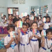 - To inculcate the spirit of Ahimsa and compassion in the young minds of SBSM students, Karuna International organized a rally around the school premises, by the students of primary and middle school, with the motto of spreading awareness and explaining the necessity of non-violence by means of slogans and placards.