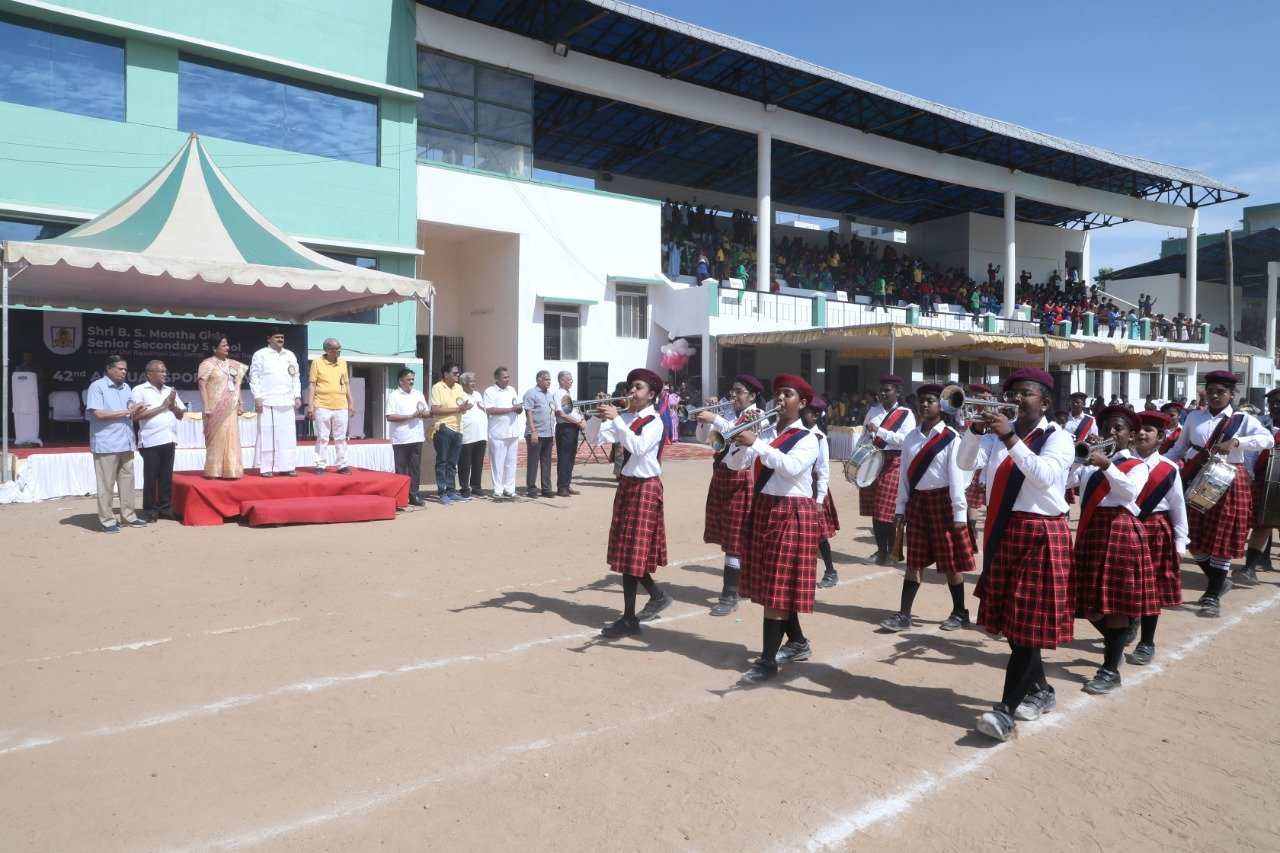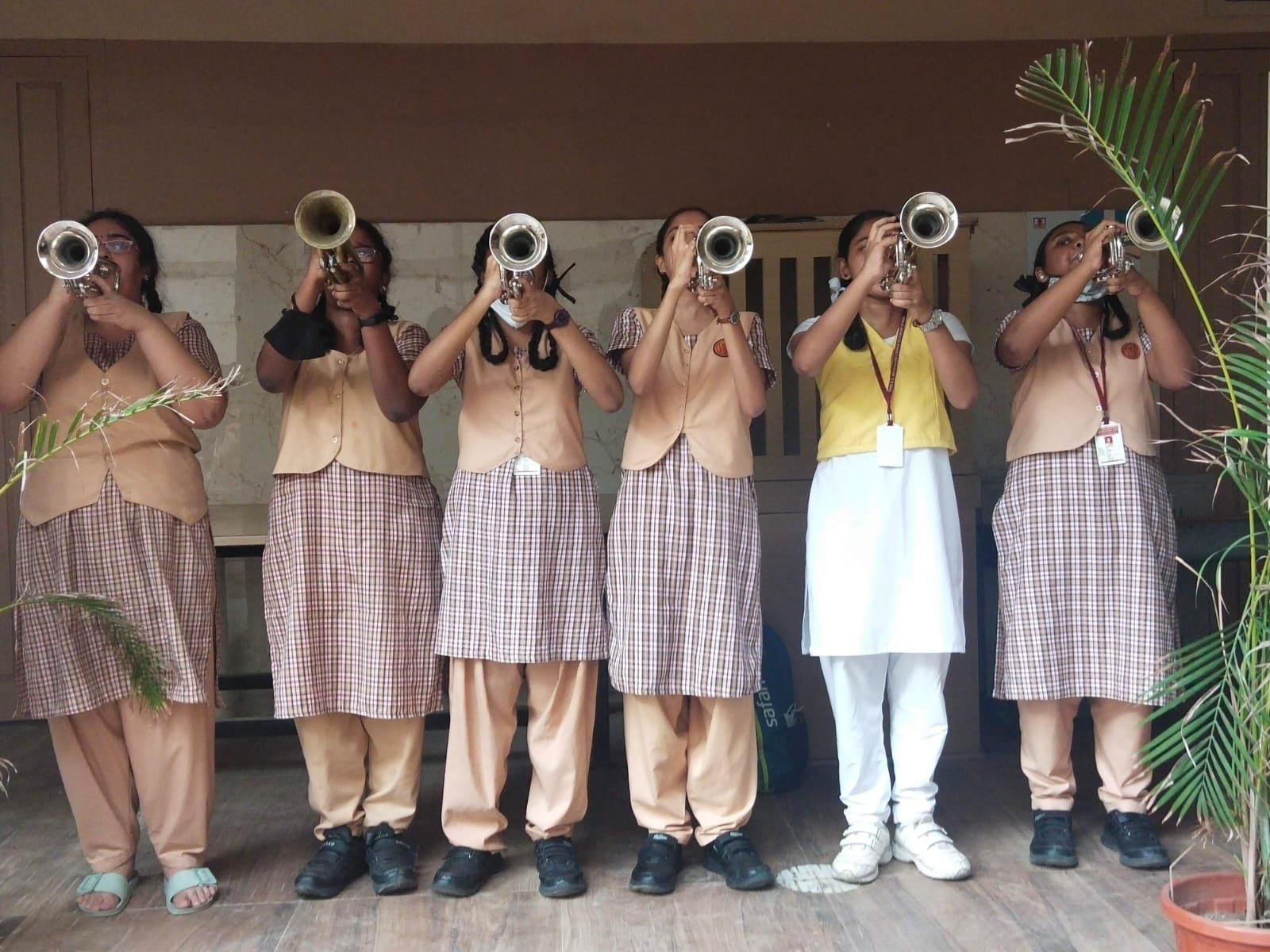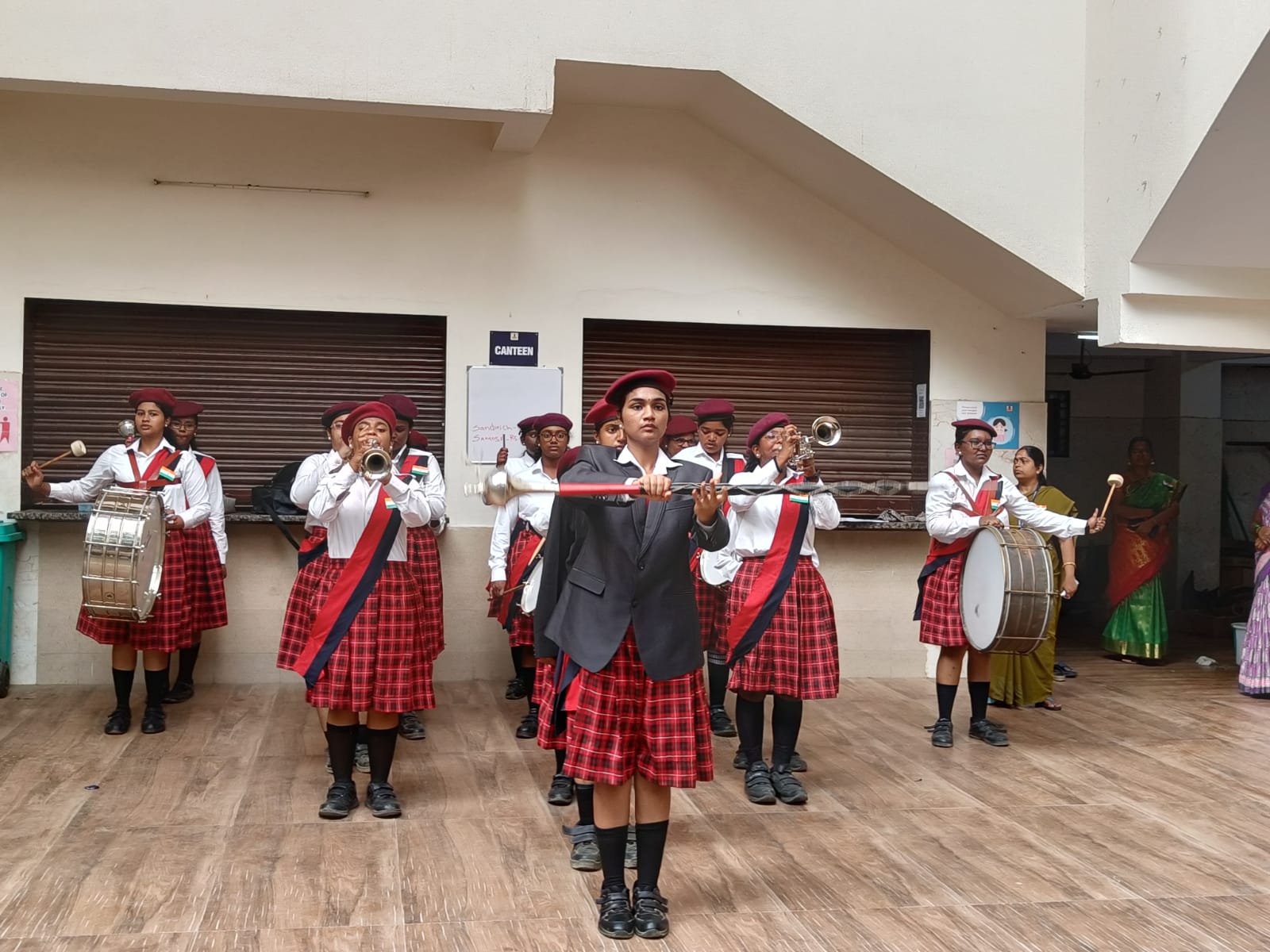 Shri B.S Mootha senior secondary believes in a theory that learning “skills”, need not necessarily initiate in an academic classroom but can also be fostered in unlikely places such as school band practise. Our school proudly welcomes our new energetic, rhythmic and vibrant school band comprising of 23 students for the year 2022-23. Our school band consists of 22 Instruments like Trumpets, bugles, Side drums, Base drums, Cymbals, Maracas, Triangle and Major stick.