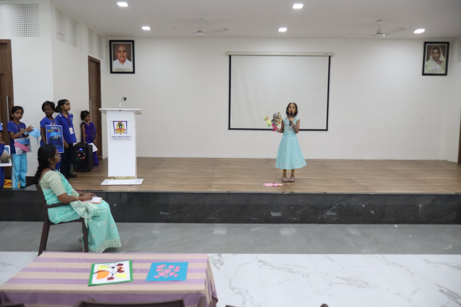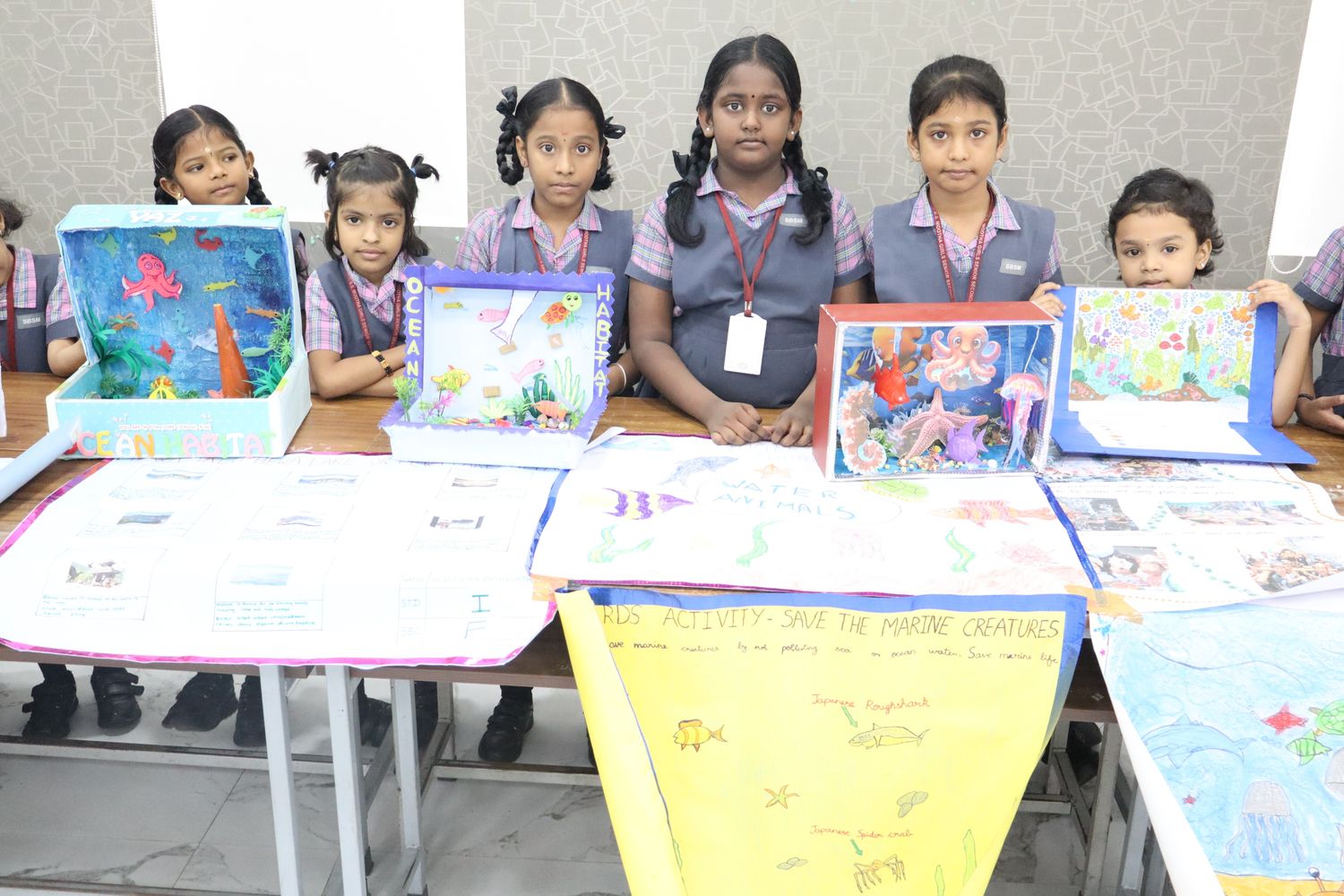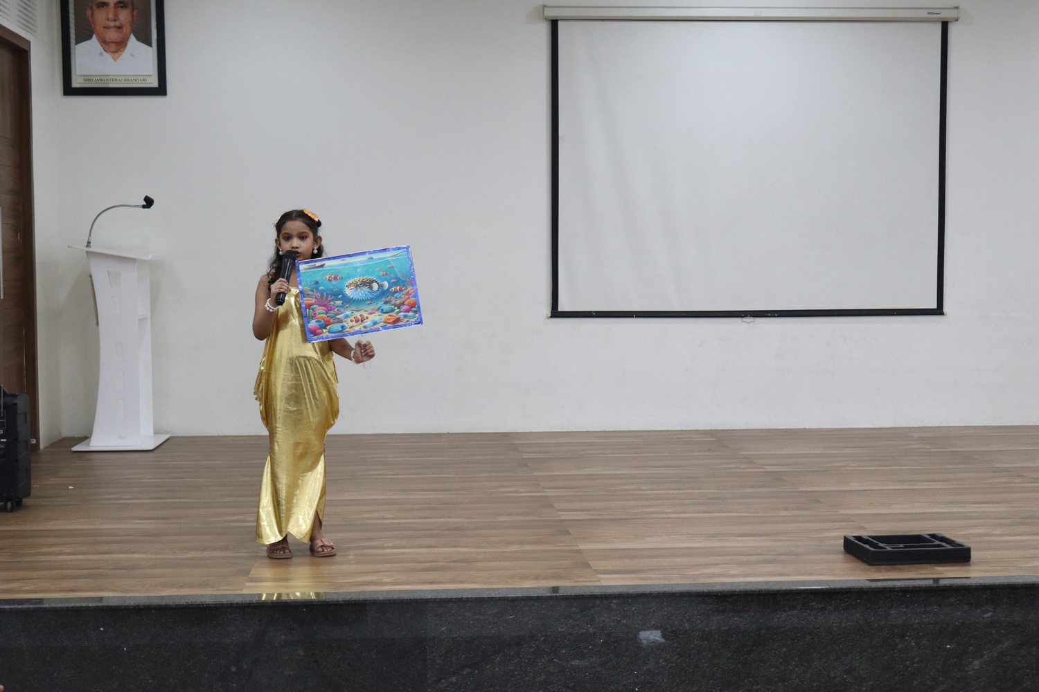 Through lively skits and enactments, the students presented creative ways to prevent ocean pollution and showcased their understanding of marine conservation. The performances included portrayals of various sea animals, along with important messages about protecting aquatic ecosystems. A delightful storytelling session titled “Whimsical Puppets” further enriched the program, as children brought ocean tales to life with handmade puppets and imaginative narratives.