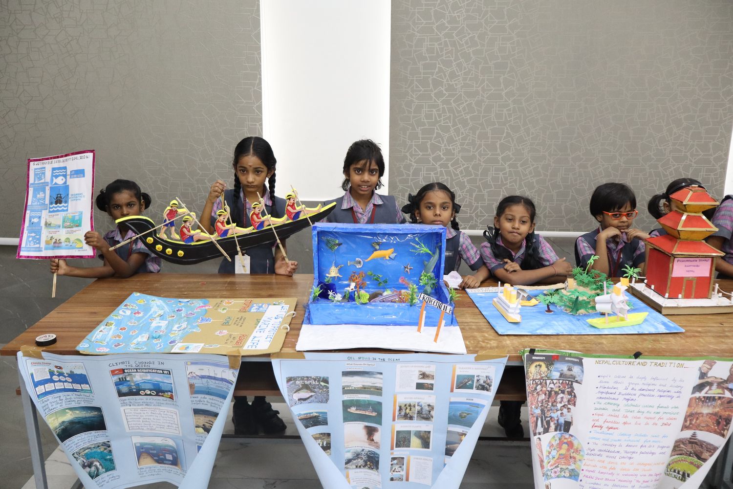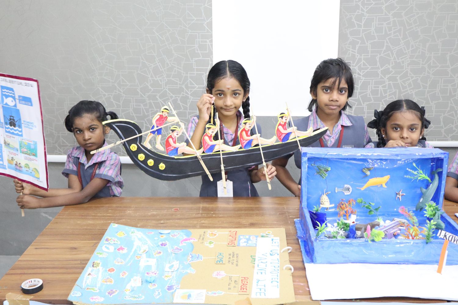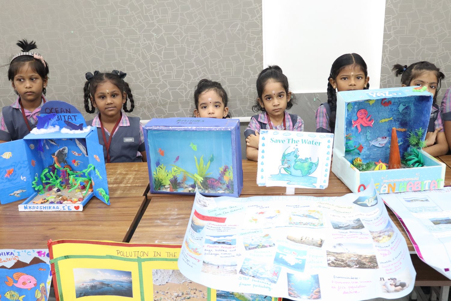 Through lively skits and enactments, the students presented creative ways to prevent ocean pollution and showcased their understanding of marine conservation. The performances included portrayals of various sea animals, along with important messages about protecting aquatic ecosystems. A delightful storytelling session titled “Whimsical Puppets” further enriched the program, as children brought ocean tales to life with handmade puppets and imaginative narratives.