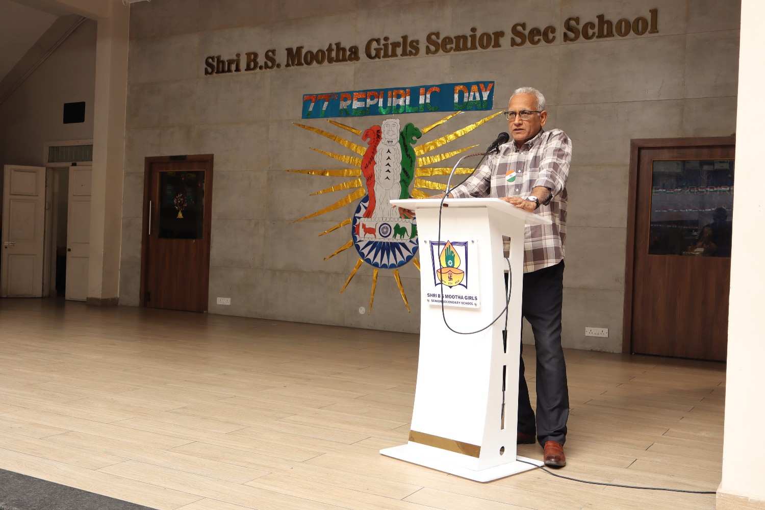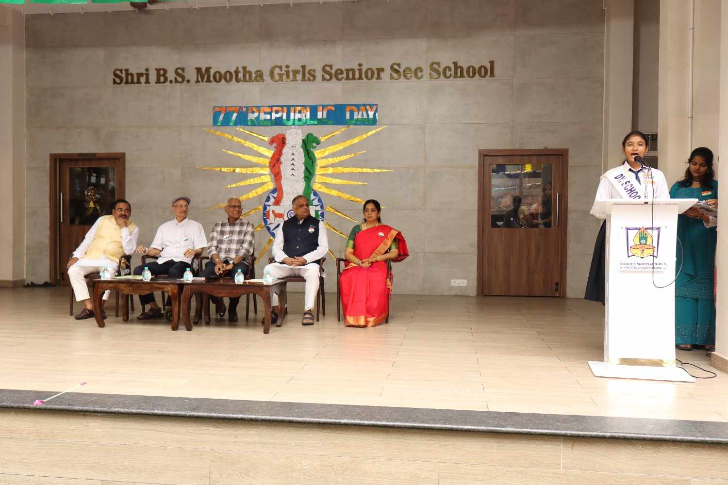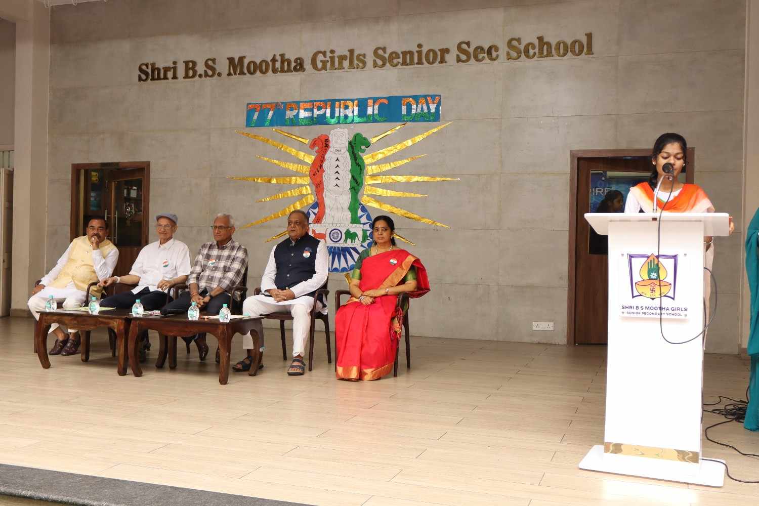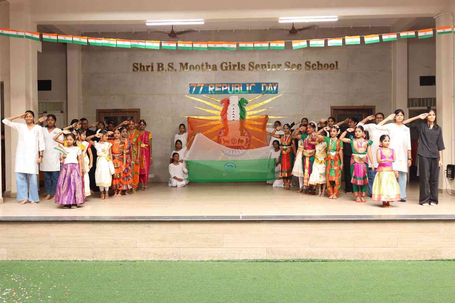 The 77th Republic Day of India was celebrated with great pride and patriotic fervor at SBSM School on 26th January. The school campus resonated with the spirit of nationalism as students, teachers, management members, parents, and distinguished guests gathered to commemorate this important national event. The programme began with a patriotic opening address highlighting the significance of Republic Day, the adoption of the Indian Constitution, and the sacrifices of our freedom fighters. This was followed by a prayer rendered by the school choir, seeking divine blessings and guidance to uphold constitutional values. A warm welcome address was delivered, extending greetings to the respected Chief Guest, management members, Principal, and the gathering. The Chief Guest, Shri Praveen Kumar Tatia, a distinguished entrepreneur, philanthropist, and social leader, was formally introduced. His inspiring journey and remarkable contributions to education, healthcare, and social welfare were highlighted. He was then felicitated by the Management Members and the Principal as a token of respect. The proud moment of the celebration was the unfurling of the National Flag by the Chief Guest. A disciplined and impressive march past by the four houses along with RSP and Guides showcased unity, coordination, and team spirit among the students.