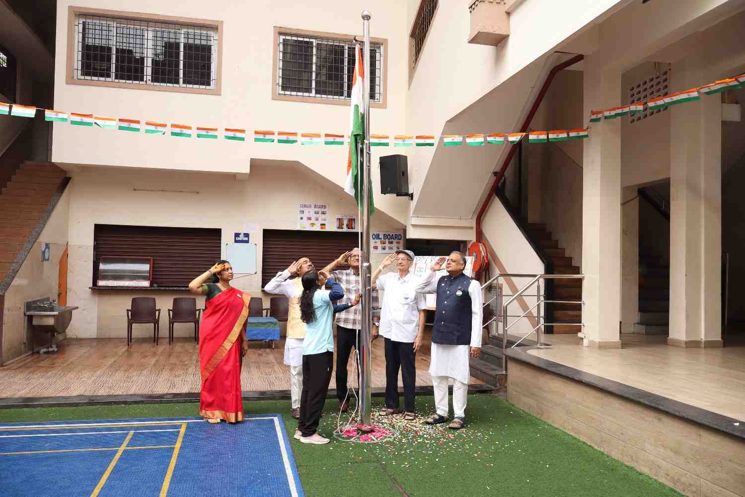 The cultural segment added colour and energy to the programme. A delightful dance by the KG students, speeches in English, Hindi, and Tamil, a soulful patriotic song, a meaningful dance drama conveying responsible citizenship, and a vibrant patriotic dance captivated the audience and reinforced national pride. The Chief Guest addressed the gathering with inspiring words, motivating students to become responsible citizens and contribute positively to society and the nation.